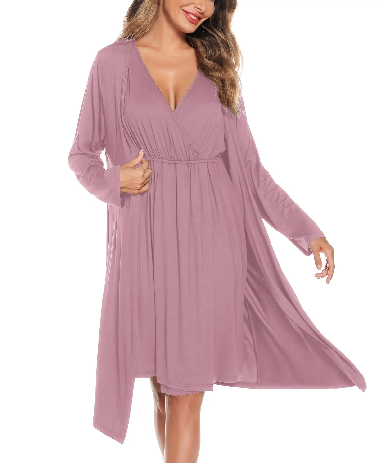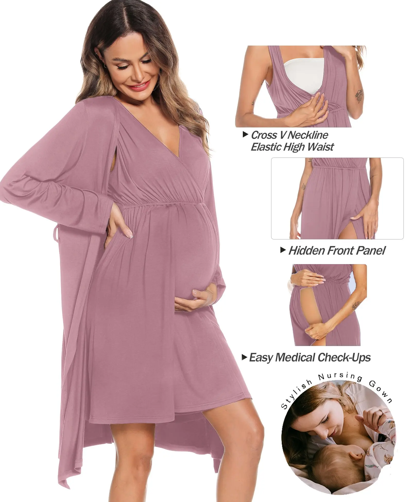·【Soft Modal Material】95% Rayon & 5% Spandex.Maternity robe and nursing Gown sets are made of breathable, soft, stretchy and comfortable modal fabric, it adds more comfort and convenience to your during maternity time, hospital delivery, breastfeeding,daily wear.