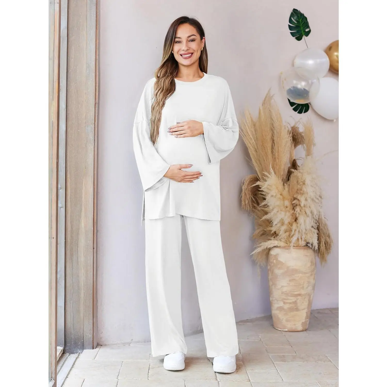 Perfect gift for the mother-to-be and after delivery female friends on Christmas, Baby Shower, or Birthday. Also suited for being a maternity two-piece lounge set around the house, late night nursing sleepwear, and postpartum pajama set for a hospital stay