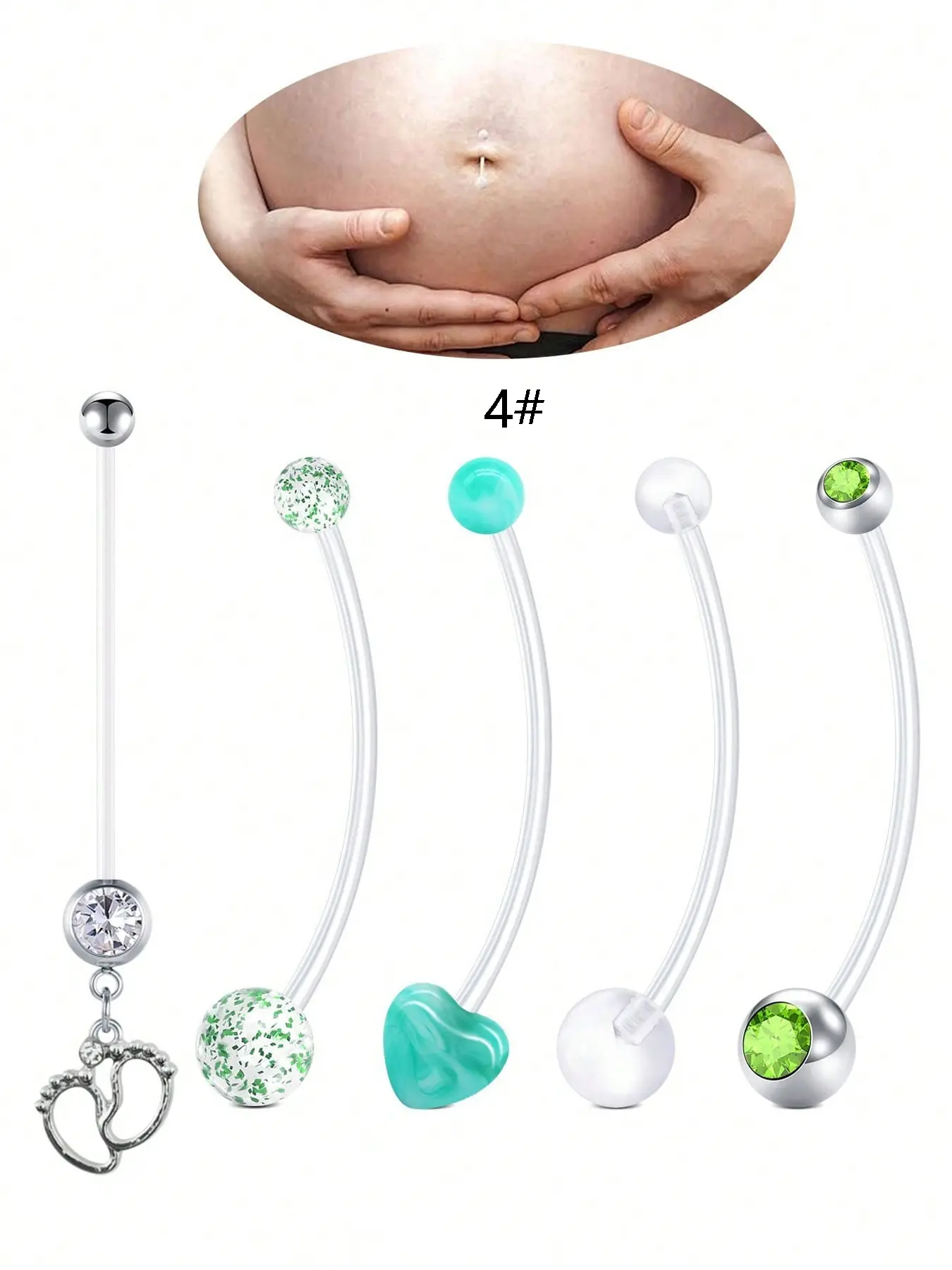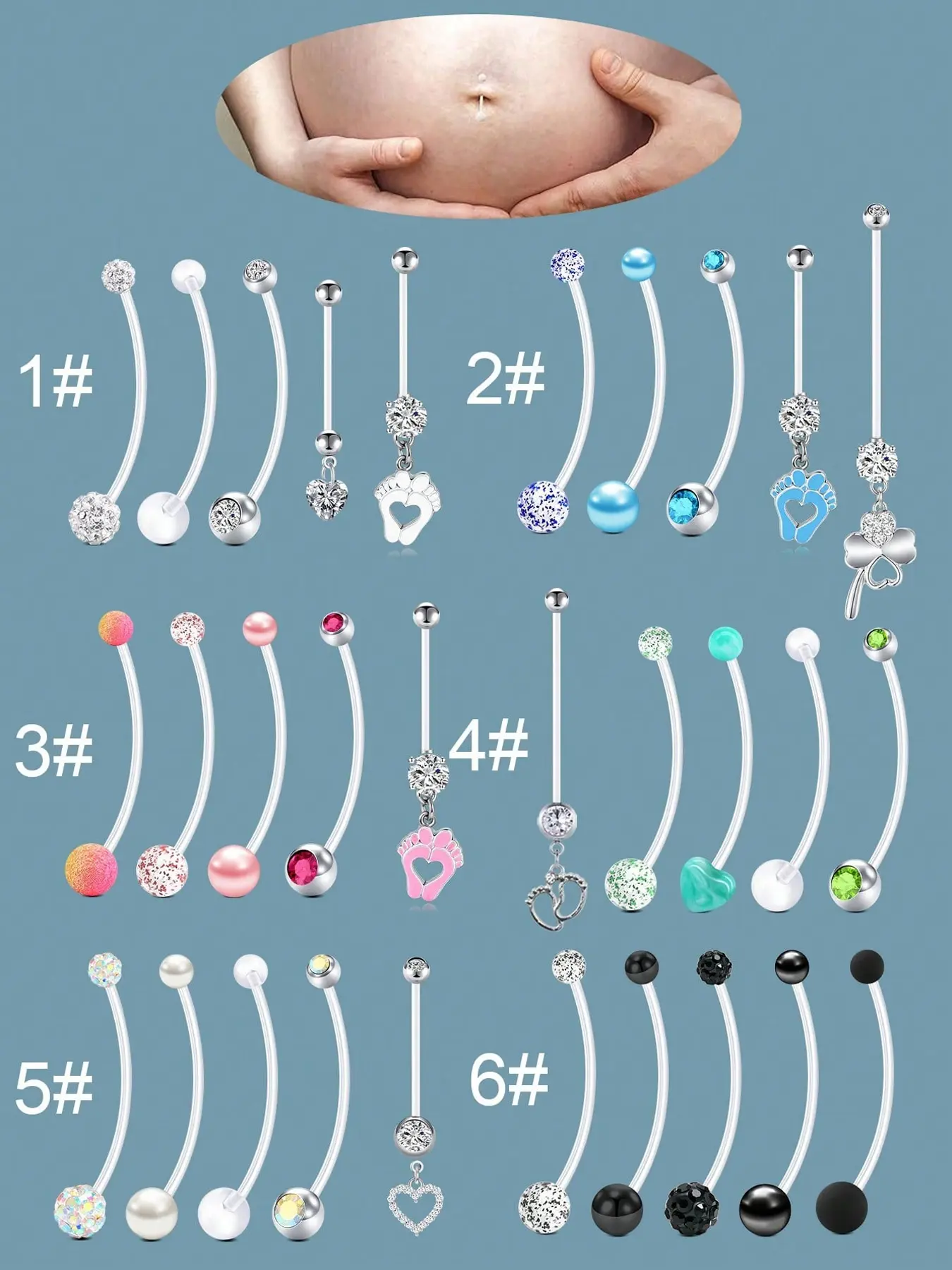 5. 5pcs 14G Pregnancy Belly Button Ring Mix Style Flexible Clear Acrylic Pregnancy Navel Piercing Retainer Maternity Bioplast Long Belly Dangle Button Ring Retainer For Woman 25-38mm Belly Hoops
