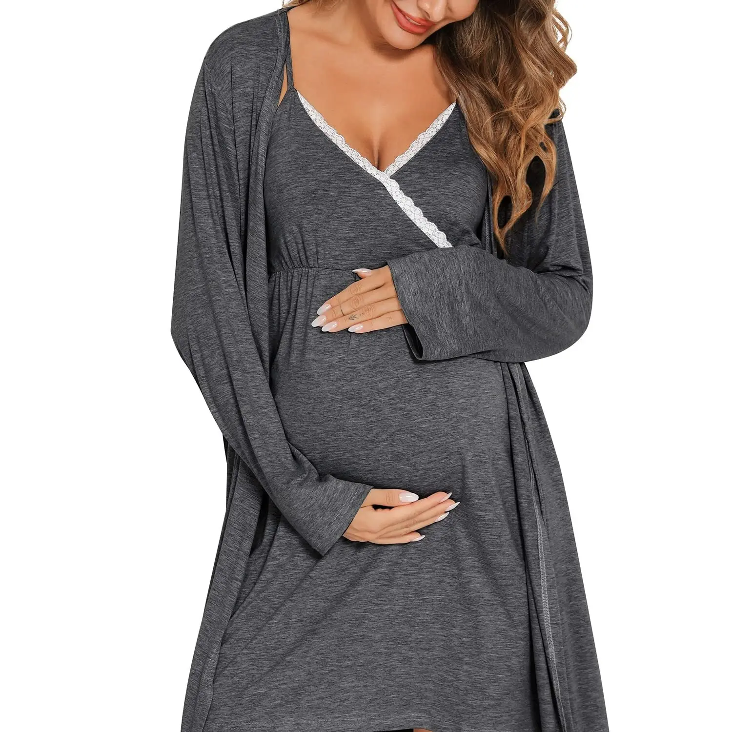 ·2PC SET Delivery for Breastfeeding: This soft 2-piece Nursing gown gets your hospital bag ready for labor and delivery and can be used at every stage of pregnancy (maternity, labor + delivery, and post-partum). It is also very suitable for daily home wear.