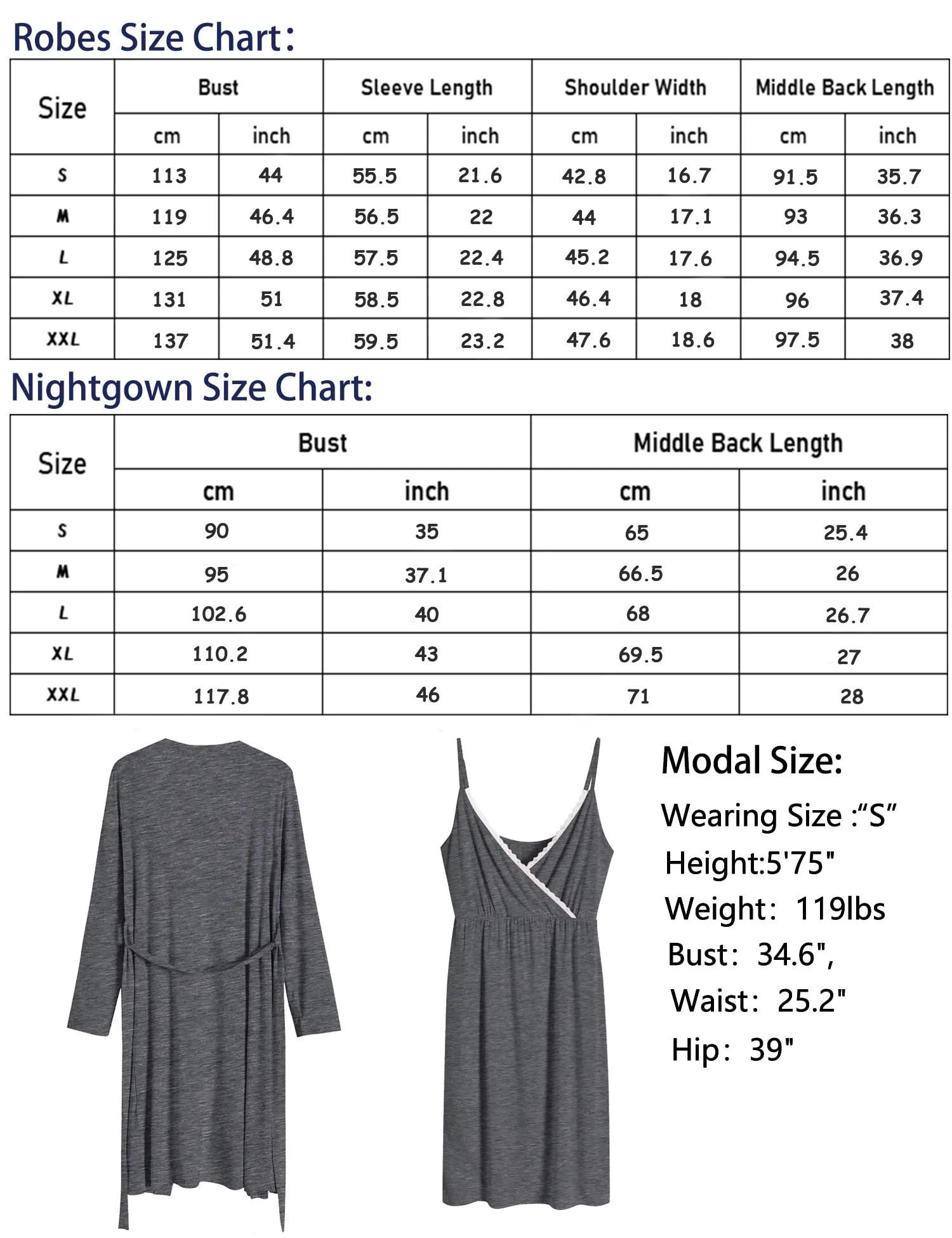 ·Material: Modal sleepwear robe set with soft, skin-friendly, soft, ligweight fabric.feels cool without clinging is comfortable for every moms, especially good for summer hot flashes and reduce night sweats. Nightgown with robe give you a relax night.