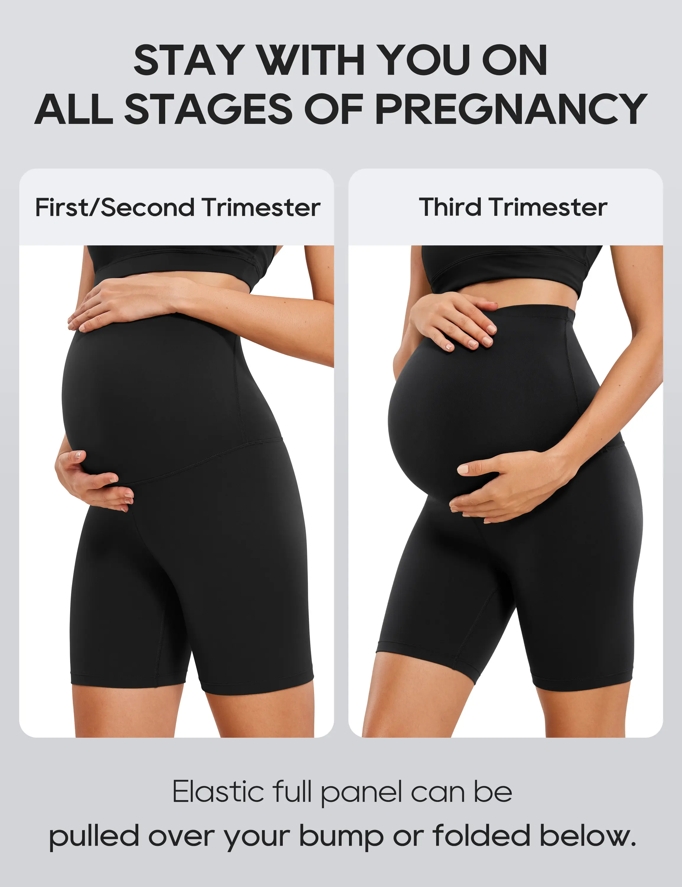 Butterluxe collection uses high-end fabric, engineered for luxurious comfort and made for all stages of pregnancy and postpartum. Maternity shorts features over the belly and u-shaped offering you more comfy and supportive.