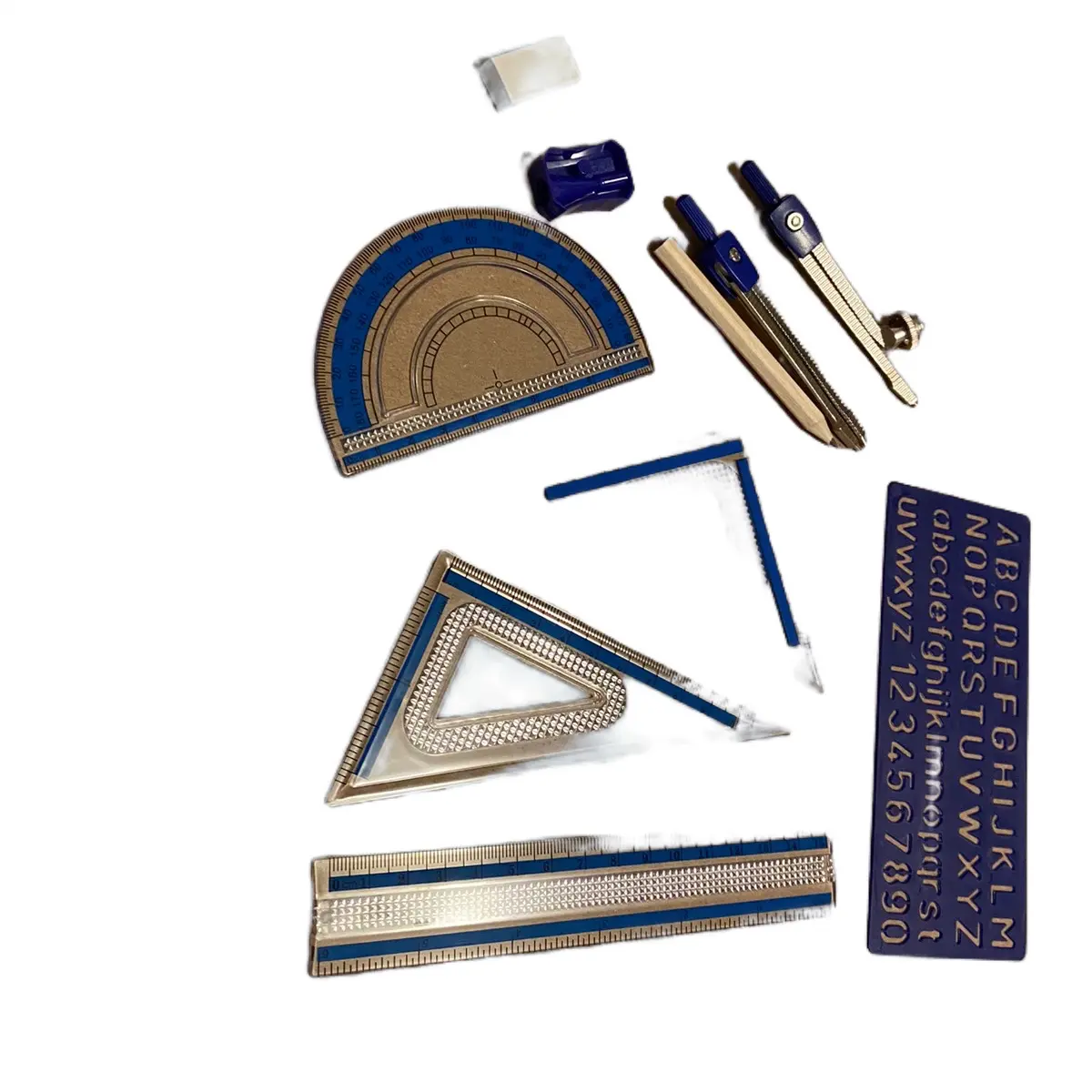 Math kit - compass, protractor, stencil, angles, geometry Metal Metal Plastic