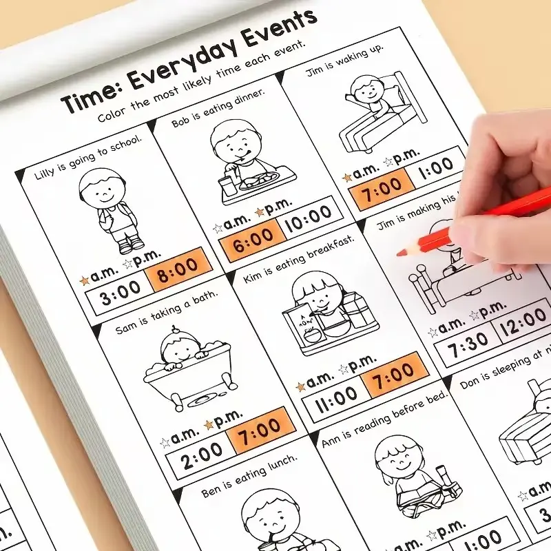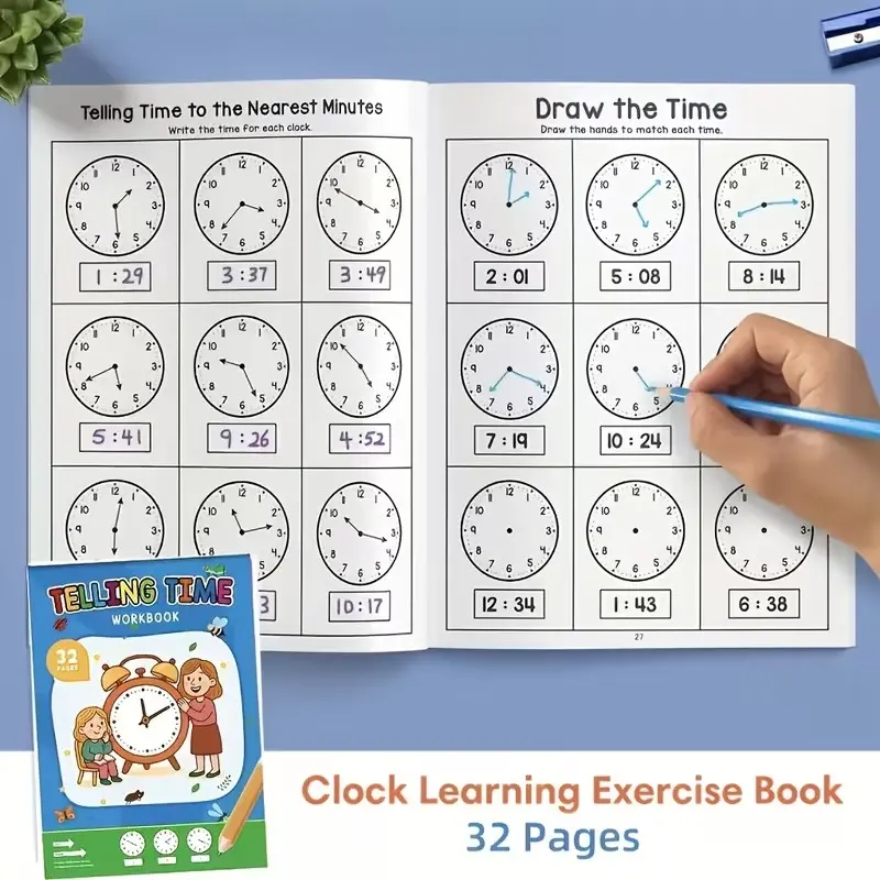 Math Practice Book Clock Sticker Teaching Model Set, Teaching Supplies, Time Reading Conversion Core Questions, High Definition Printing, Elementary School Teacher Use