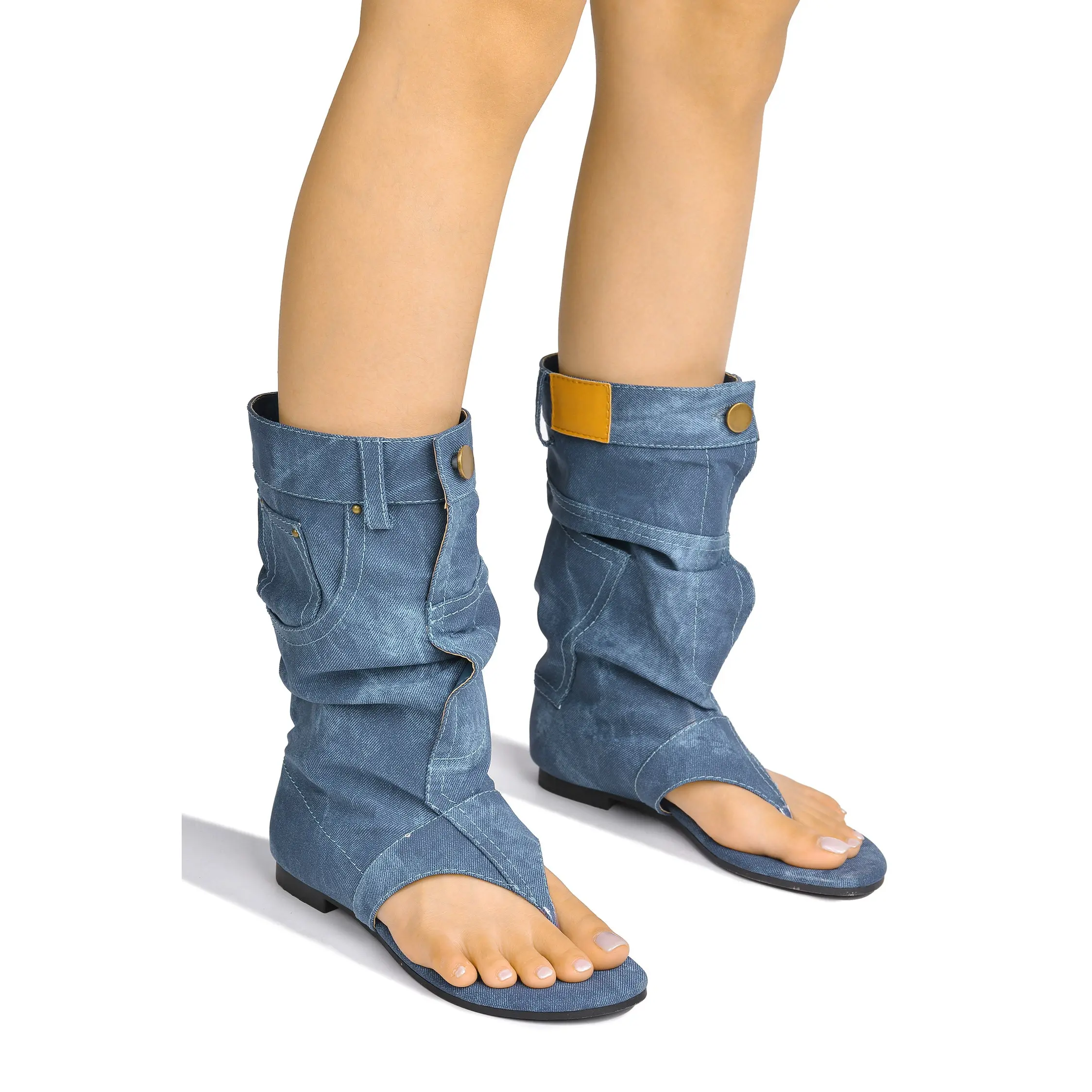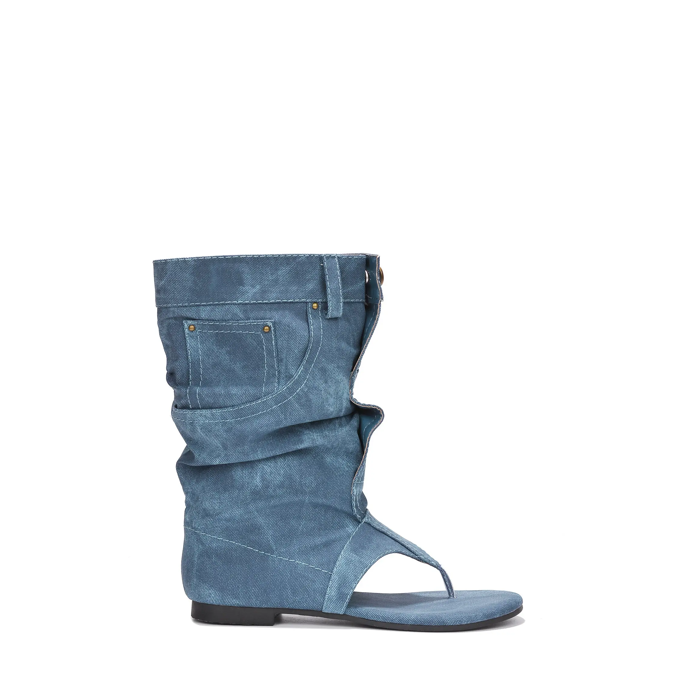 Matie Y2K Denim Slouchy Thong Sandal Boots - Blue Girl Women