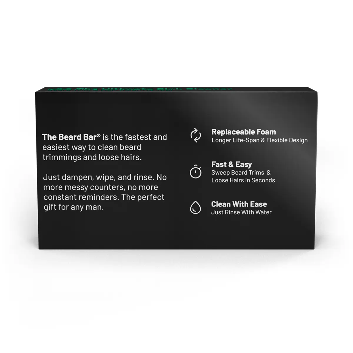 The Beard Bar is designed for effective cleaning. It is a practical addition to your grooming routine. Size: 5 inches x 3 inches x 1 inch. Weight: 85 g. Replace the foam every 1-6 months.