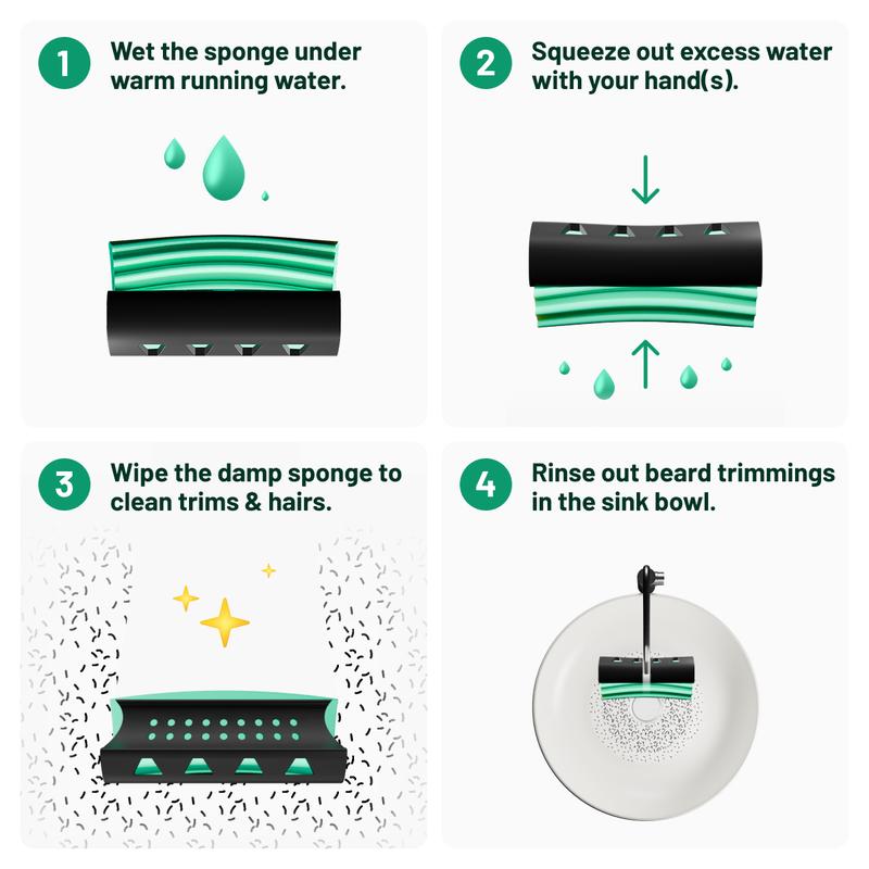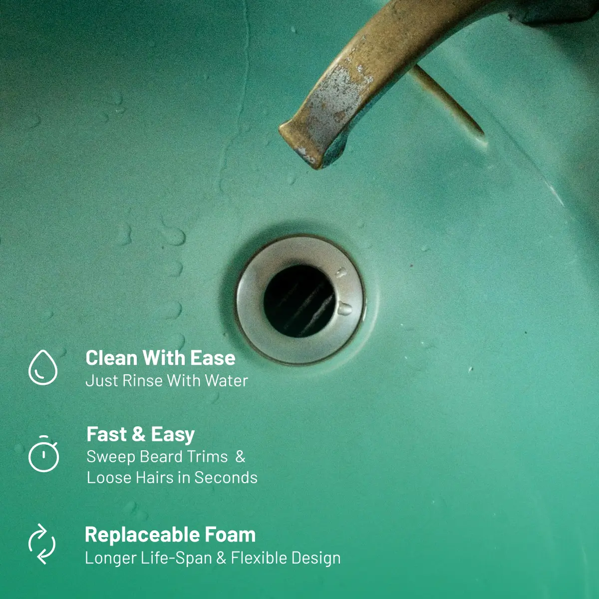 This innovative tool cleans up beard trimmings from sinks and countertops after shaving. It keeps your grooming routine organized and efficient. The flexible design curves around sinks, while the replaceable foam means you don't have to buy a new handle when its time to replace to foam.