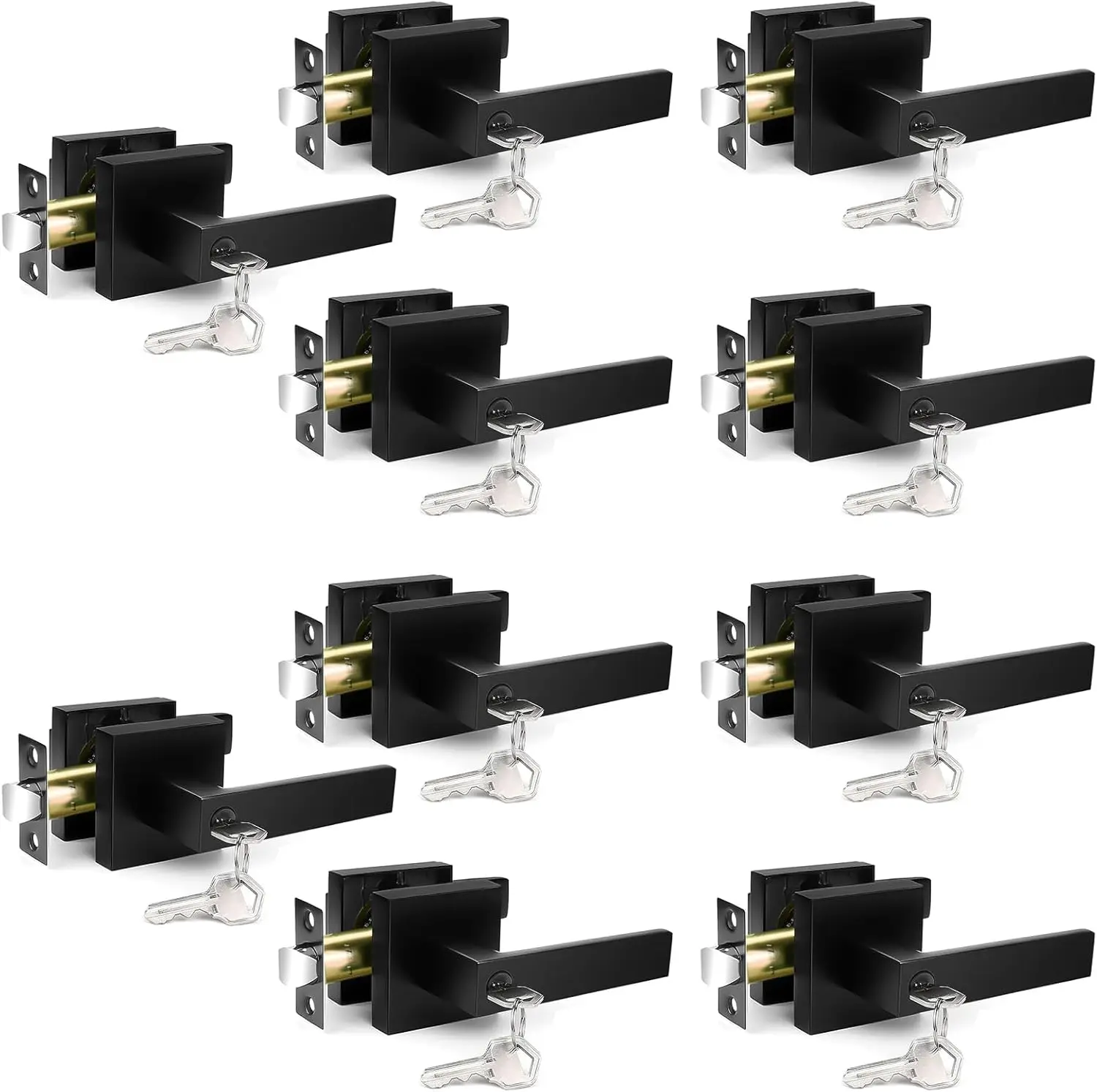 Door Handles Interior, Door Knobs Interior, Black Door Handle with Reversible Lever, Keyed Alike Door Lock Sets for Bedroom, 10 Packs Heavy Duty Door Lock Sets, Matte Black