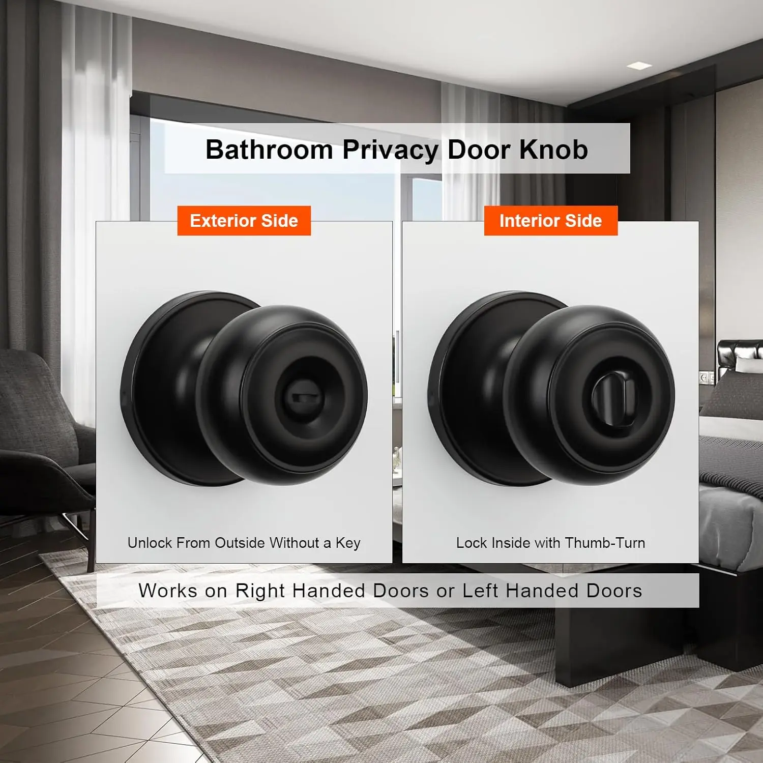 2/5/6/10 Pack Privacy Door Knob, Matte Black Door Knobs, Keyless Doorknobs Interior Door Lock, Black Interior Door Knobs for Bedroom or Bathroom Classic Round Doorknobs Hardware