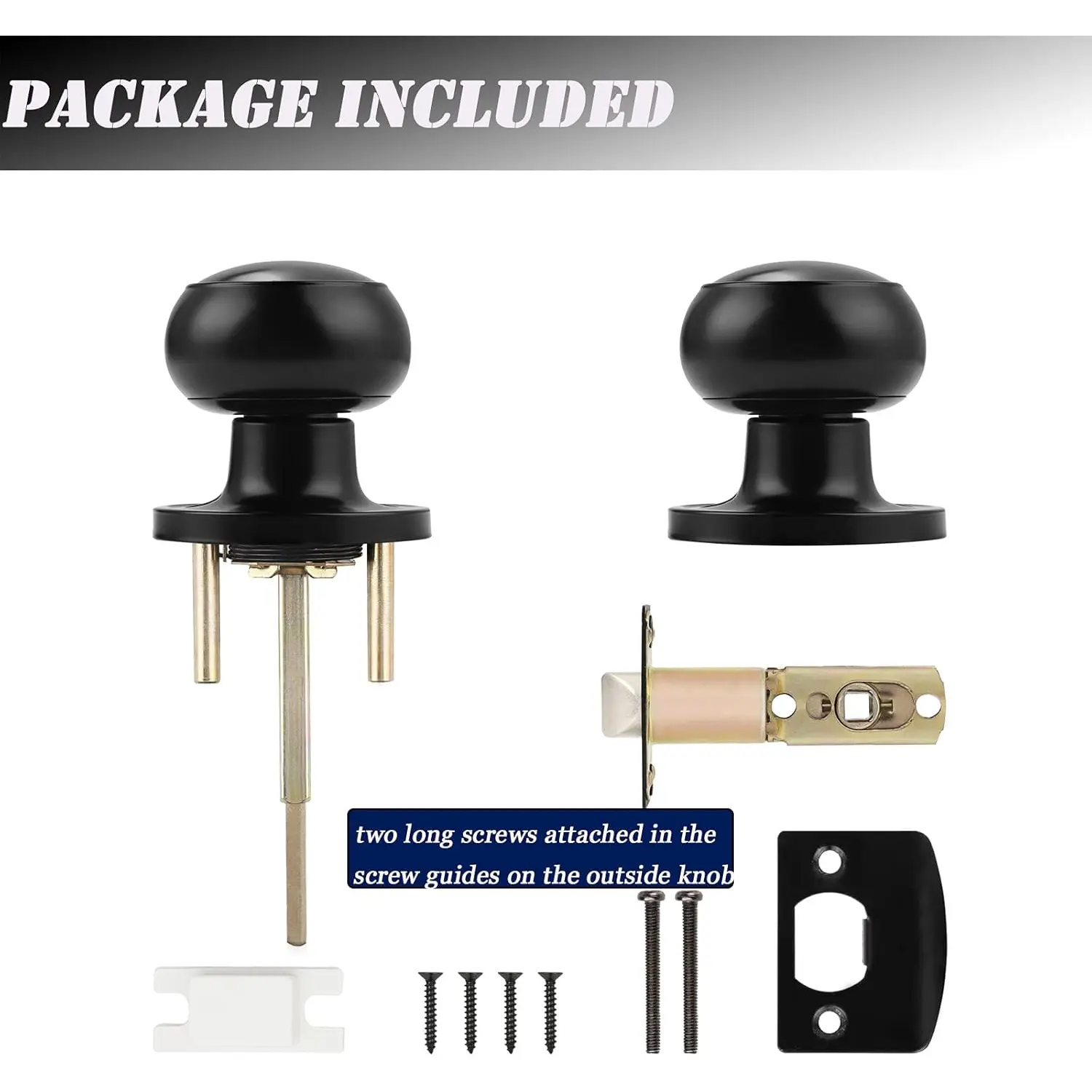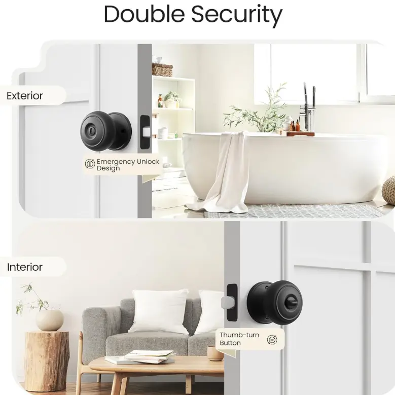 【Round Ball Door Knobs】Can be Locked inside by the turn button unlock outside with emergency pin or coin.