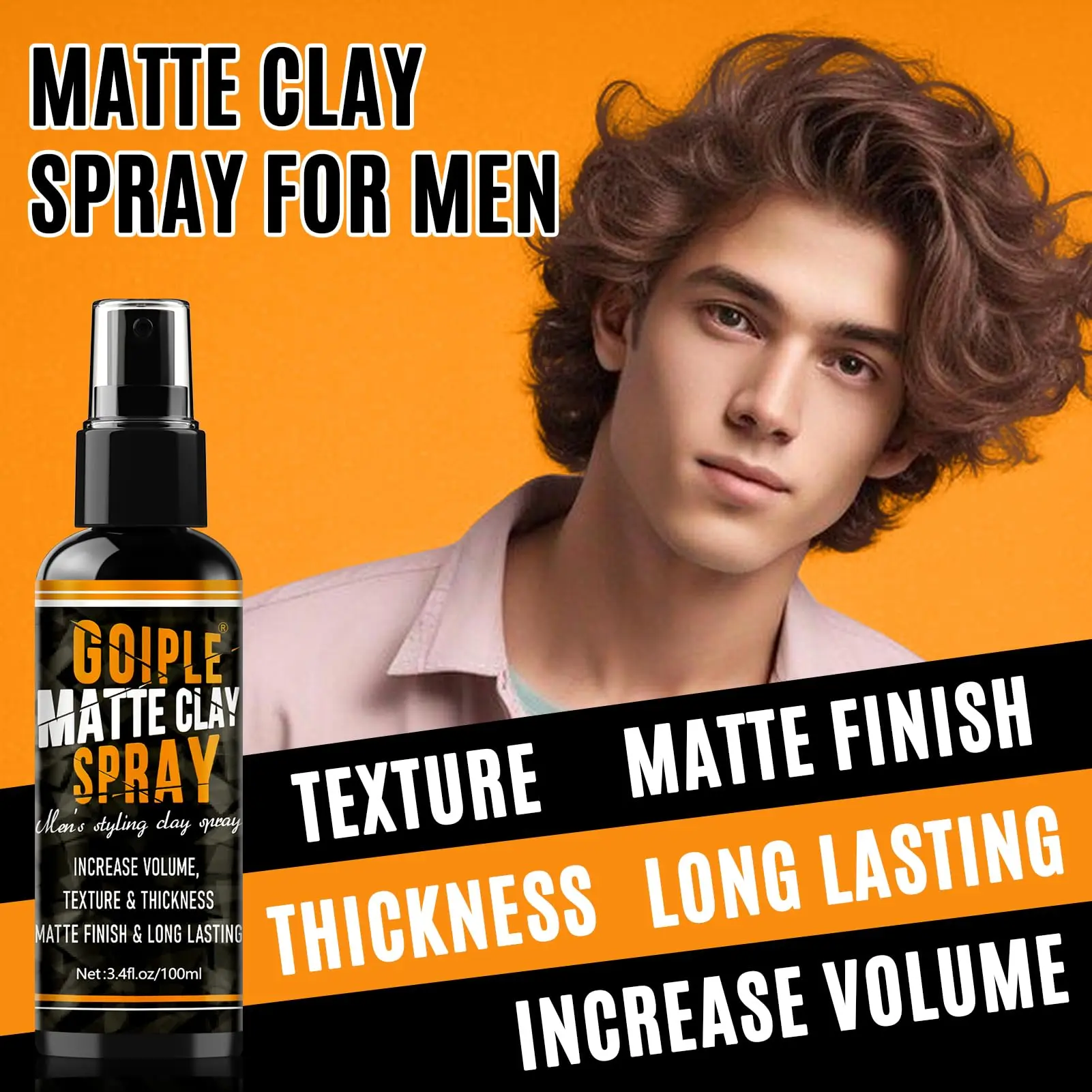 ·Barber Grade Control: Professional texture hair products. Spray-triggered clay mist evenly coats strands, allowing precise sculpting of fades, pompadours, or messy quiffs. Dries clear with zero chalky residue — reworkable style without stiffness