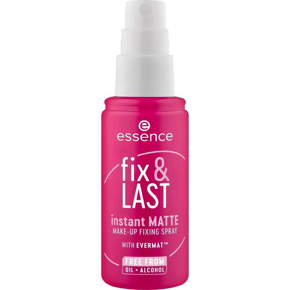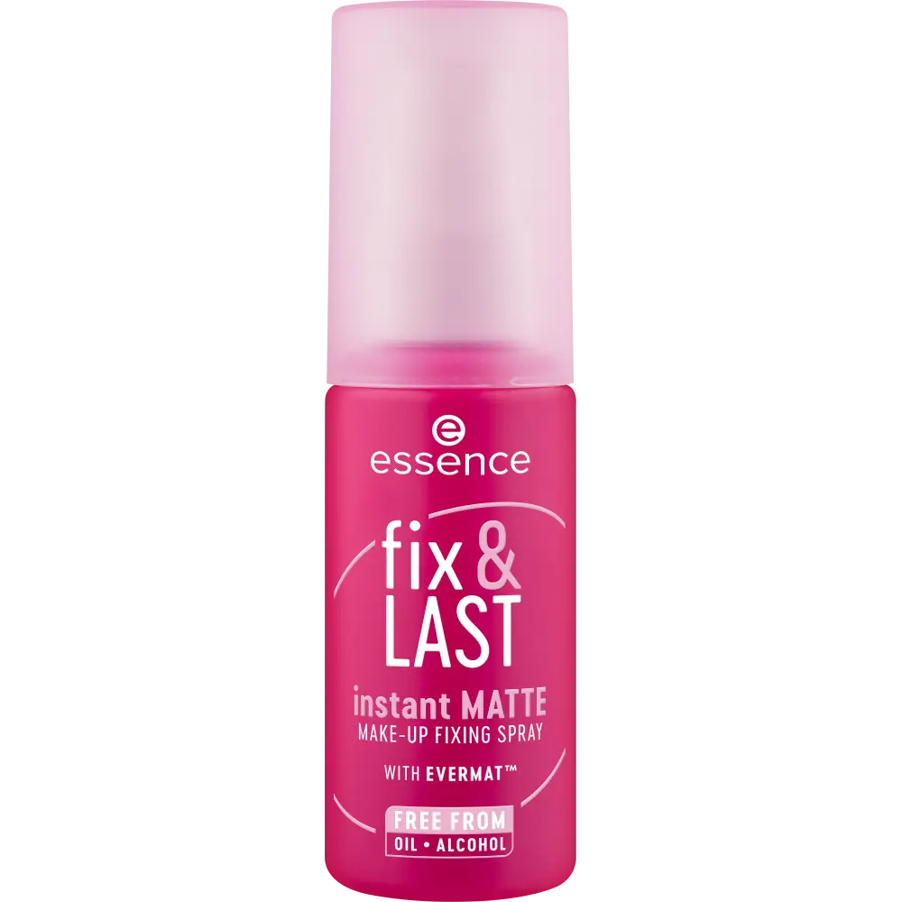 Back and better than ever! Lock in your look with the essence Fix & LAST Instant Matte Make-Up Fixing Spray. The new and improved spray nozzle delivers an even mist for flawless application. Enjoy a shine-free, matte finish that keeps your makeup looking fresh all day!Why we love it:- Provides long-lasting makeup results- Shine-free, matte finish- Improved spray nozzle- Soft even mist with every spray- Packaging made of recycled material