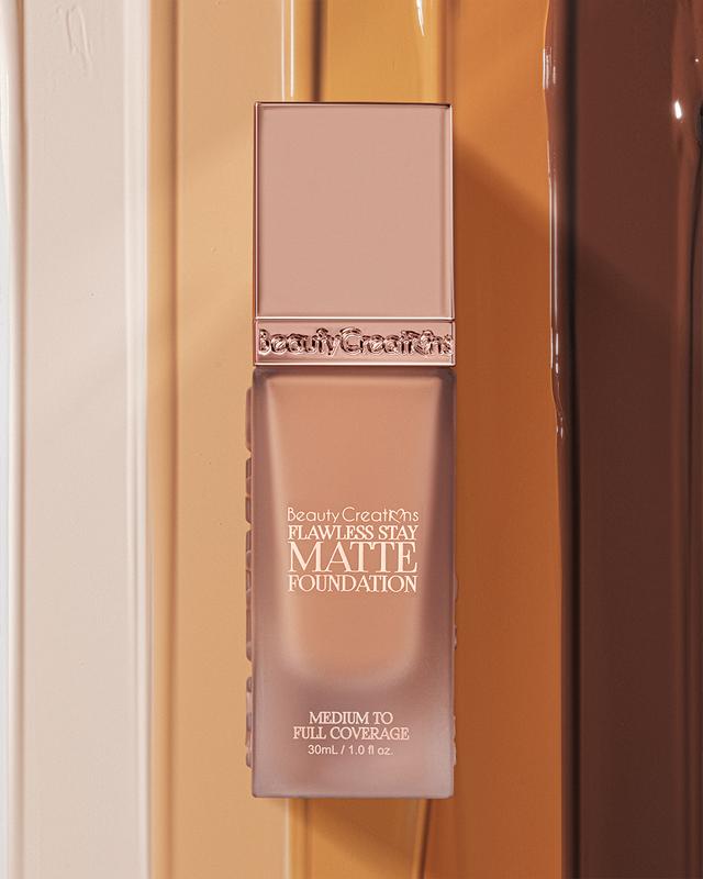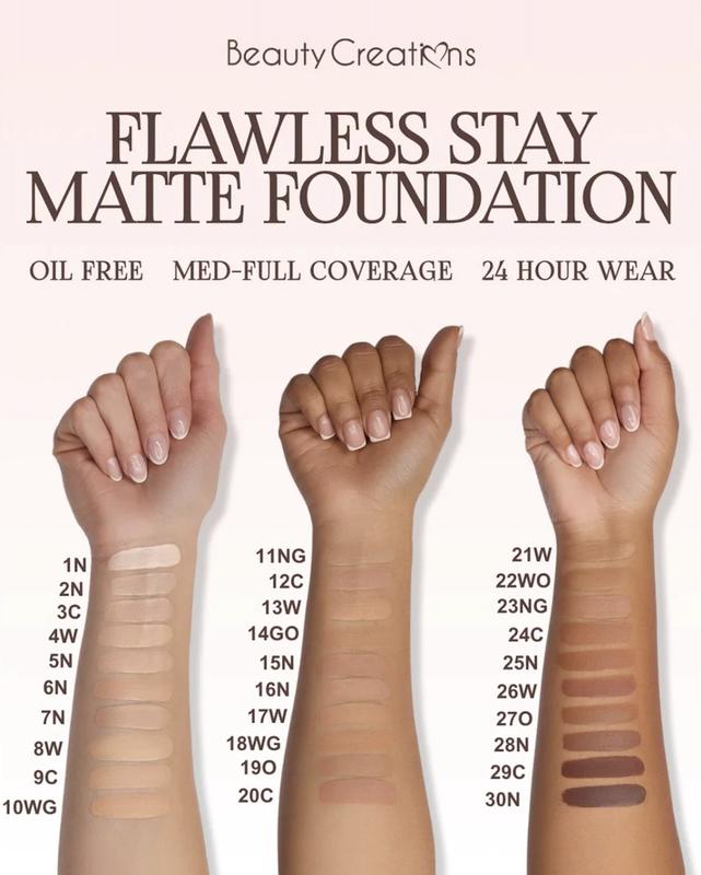 Experience all-day wear with the Flawless Stay Liquid Matte Foundation. This lightweight and oil-free formula delivers 24-hour coverage with a smooth matte finish. Infused with niacinamide, it works to brighten the skin, smooth texture, minimize pores, and reduce the appearance of wrinkles for a perfected complexion.