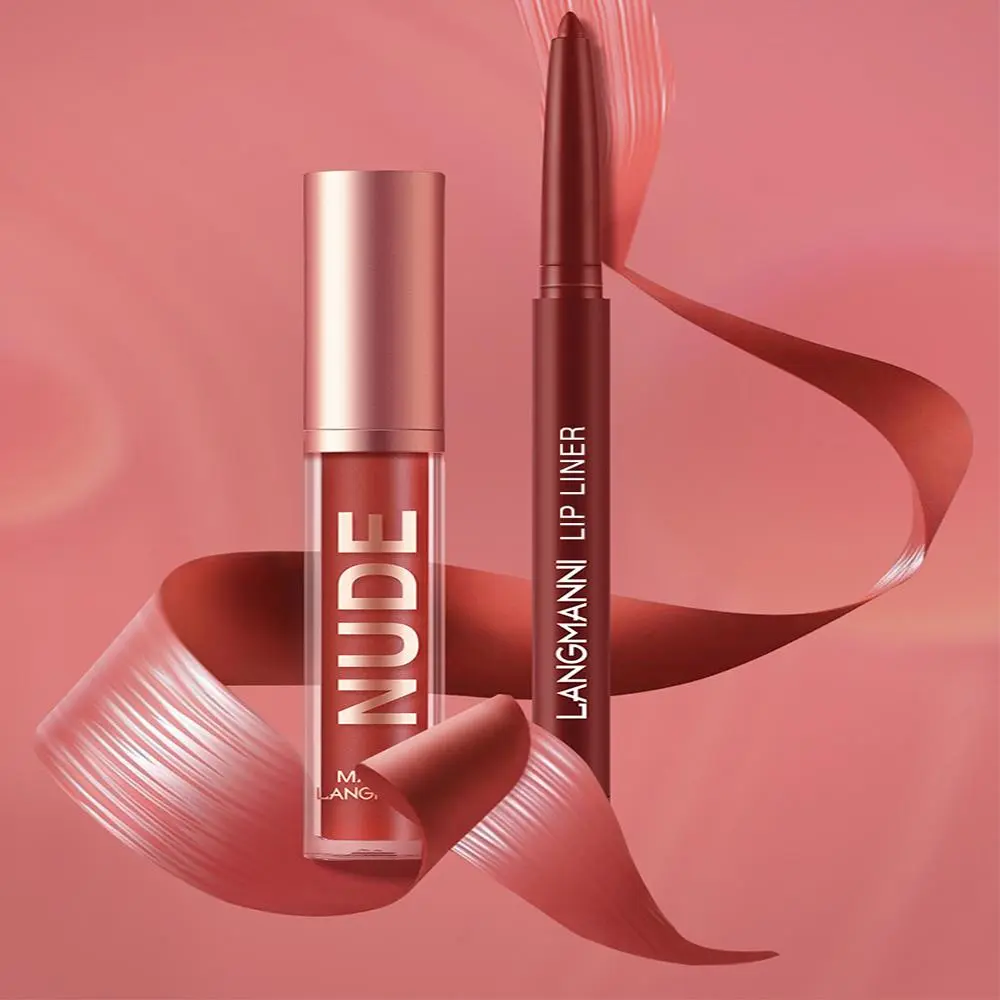 Matte Lipstick & Lip Liner Makeup Set, Liquid Lip Liner, 2 Counts Long Lasting Easy Coloring Lipsticks, Moisturizing Lip Kit, Natural Lip Color, Suitable for All Occasions