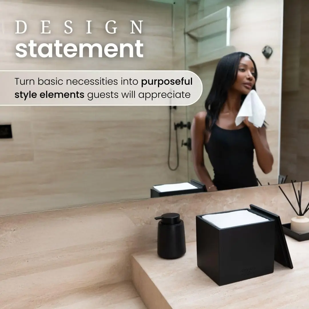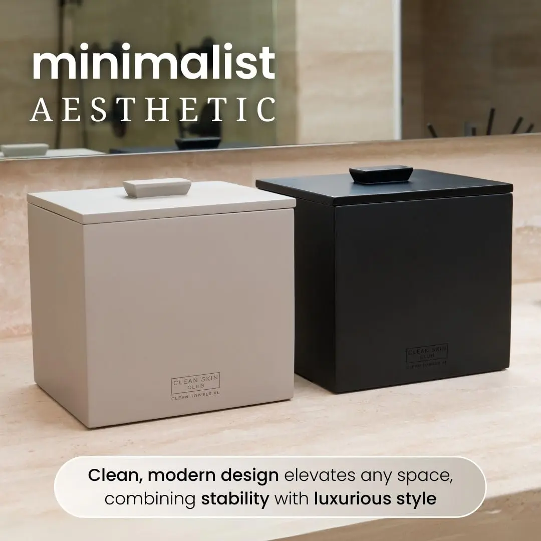 The matte onyx cement box is an excellent choice for storing clean skin or face towels. Its minimalist design and matte black finish give it a sleek, spa-like look that elevates any bathroom or vanity space. I love it.