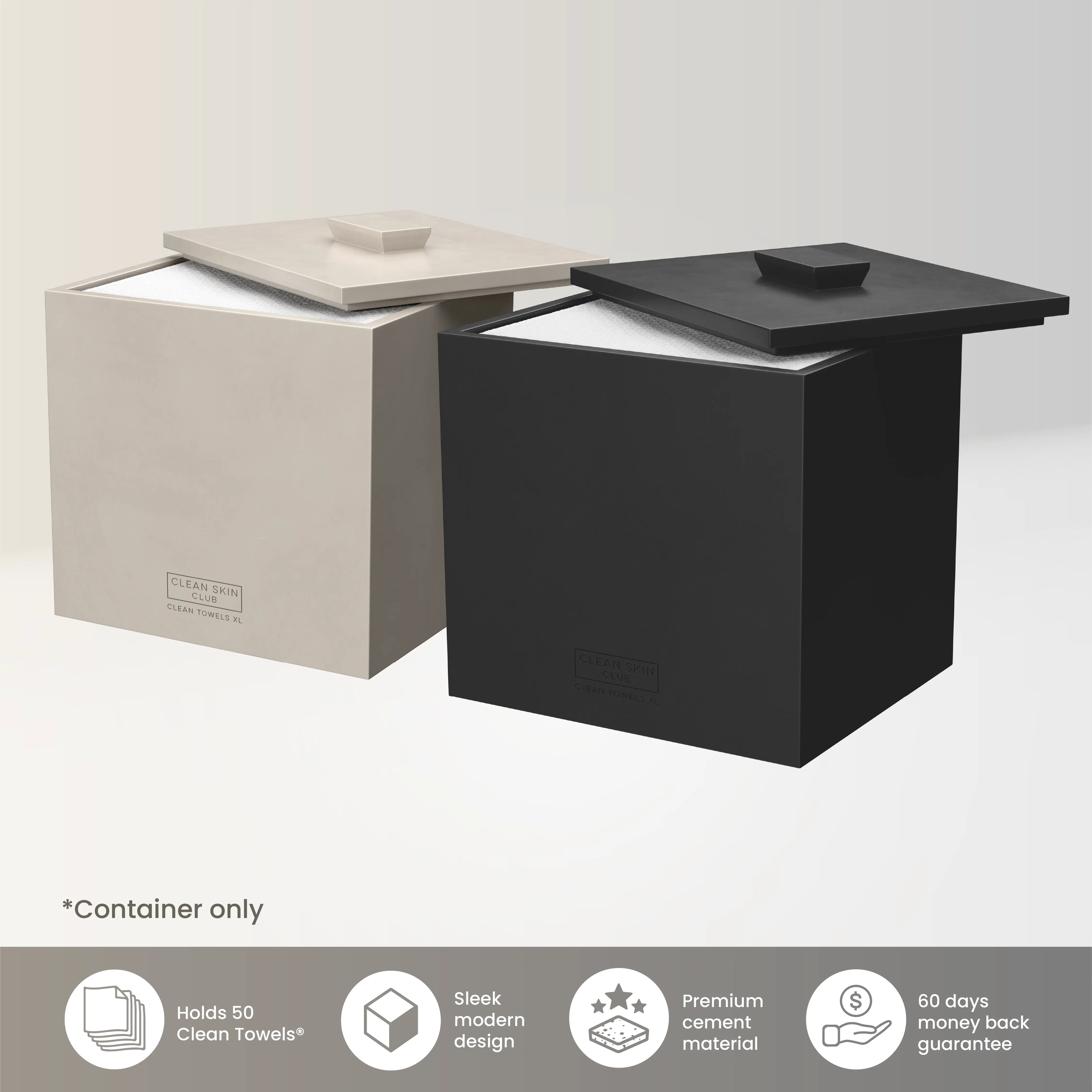 My first order came in scratched and stained. I reached out to customer service and they sent a replacement which I received in 2 days. This box is very aesthetically pleasing and the 50 count XL towels fit perfectly. I ❤️❤️❤️ my cement box!! Thank you Clean Skin Club for great products & excellent customer service!!!
