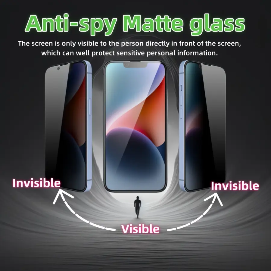 2+2pcs Matte Privacy Screen Protectors with Camera Lens Protectors for iPhone series, Tempered Glass Anti-Spy, Protective, 9H Hardness Anti-Scratch, Compatible with iphone 17/16/15/14/13/12/11 air Plus pro max Series Accessories Protection