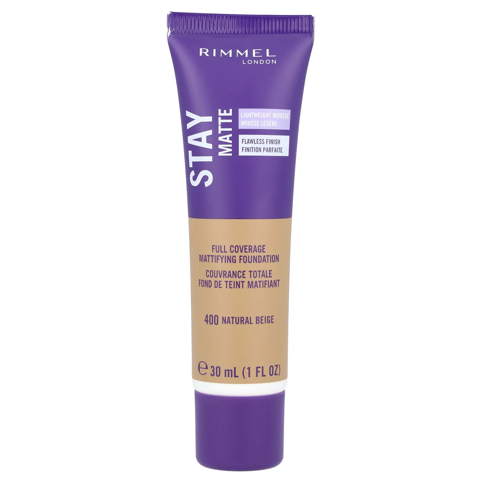 Rimmel London Full-Coverage Mattifying Stay Matte Foundation - 400 Natural Beige, 1 fl oz (30 ml)