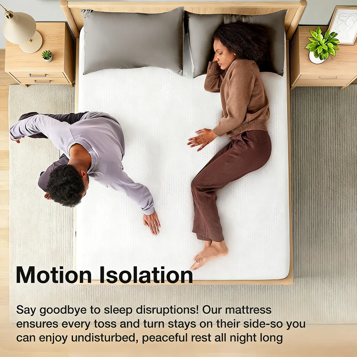 Comfort Support - Unlike other mattresses, the Novilla size mattress features 5 foam layers, providing superior noise and vibration absorption during sleep movements. This ensures that your deep sleep remains undisturbed by your partner's tossing and turning or getting up, enhancing overall sleep comfort. The high-density foam offers balanced support to maintain proper spinal alignment. The combination of gel memory foam and comfort foam effectively relieves pressure points.