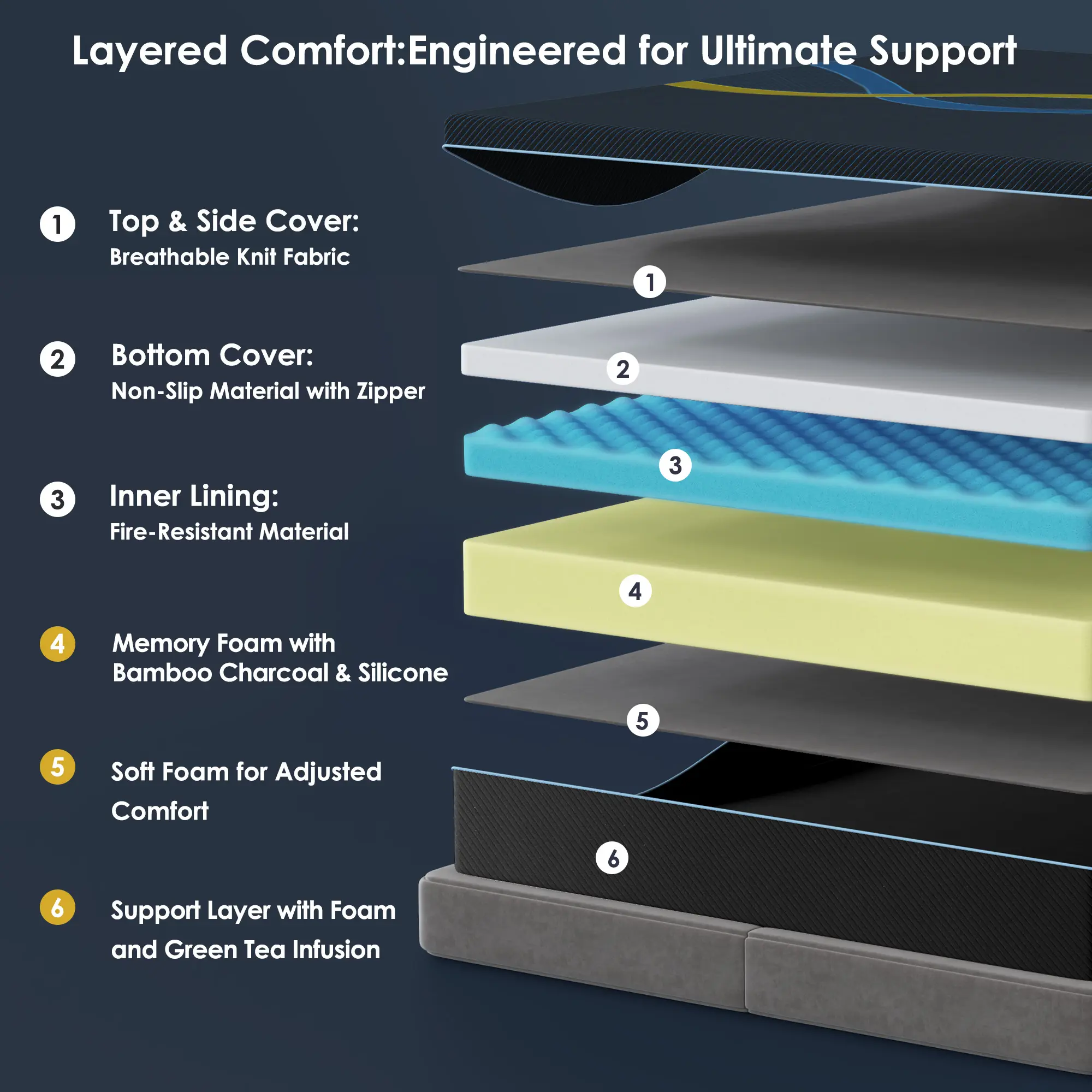 ·Multi-Layer Memory Foam: Ensures a comfortable and supportive sleep experience.