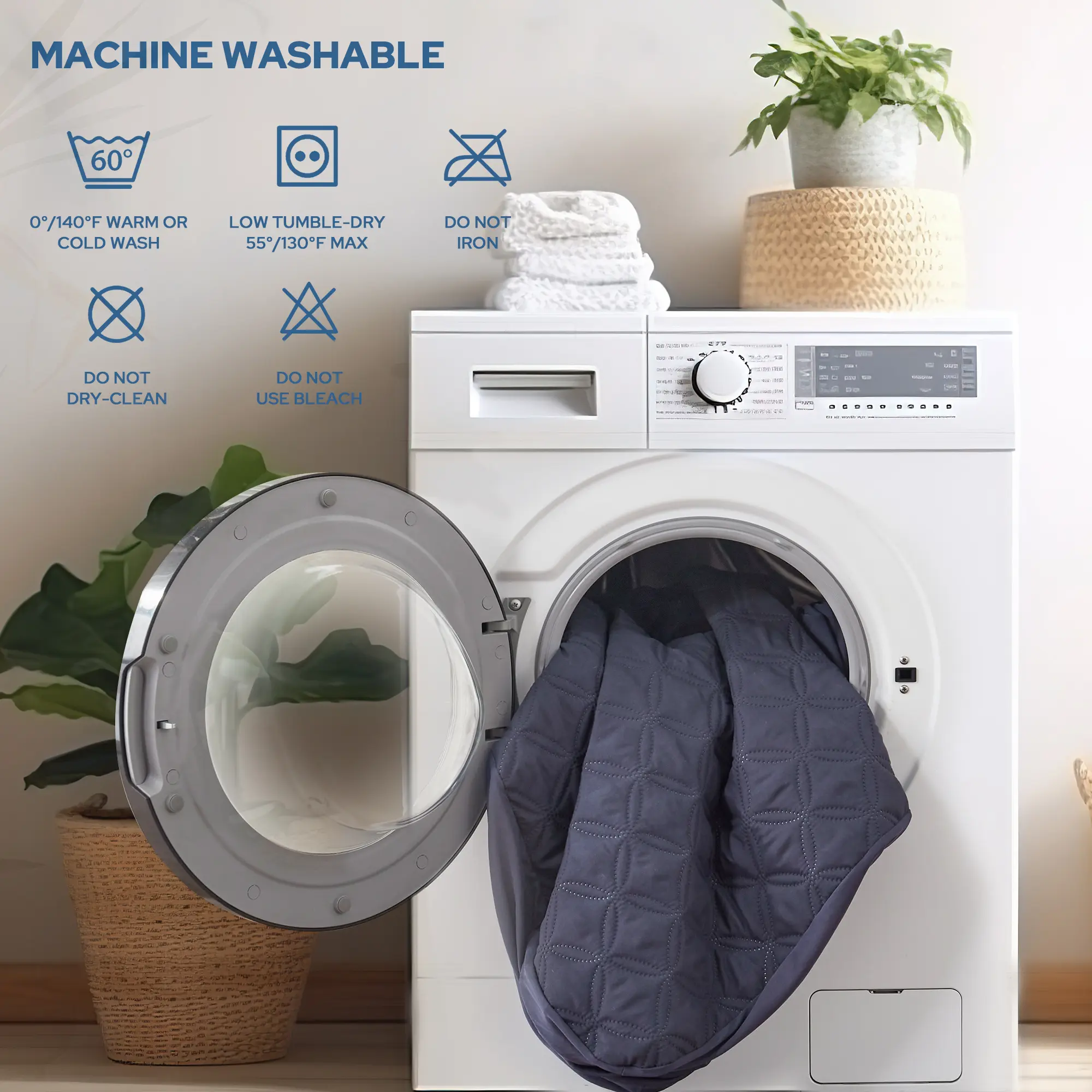 Stain-Resistant & Easy Care • Machine washable (cold, gentle cycle) • Tumble dry low heat (• No bleach/ironing needed! Pro Tip: After unpacking, fluff in sunlight for max softness!