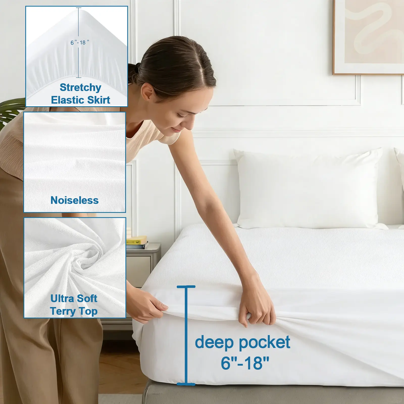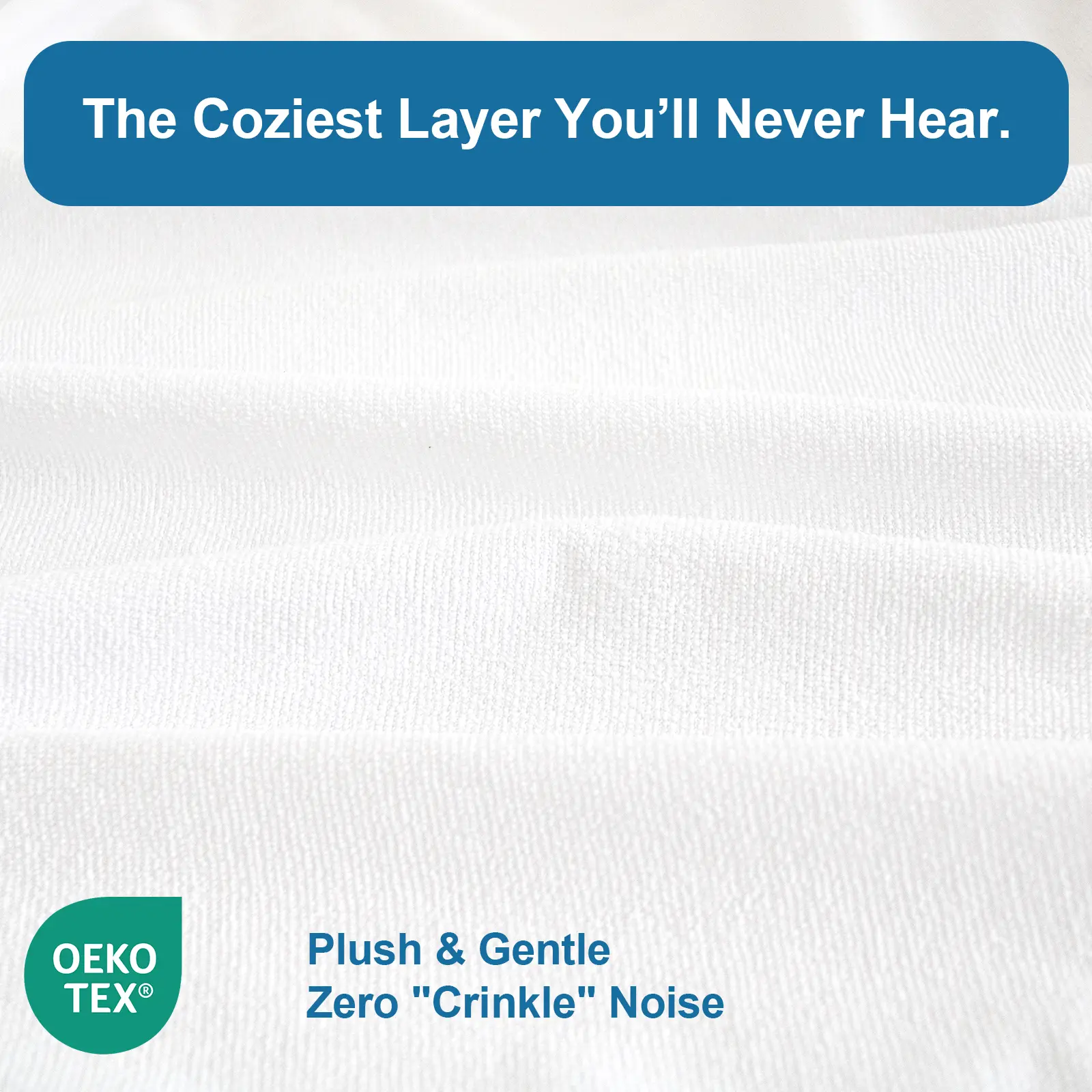·Ultra-Soft & Noiseless Terry Surface: The surface of the mattress protector is made from ultra-soft & breathable & noiseless & skin-friendly microfiber Terry cloth fabric, naturally wicks away moisture, providing ultimate dryness and comfort, ensuring a quiet sleeping environment! Move freely without any annoying "crinkling" sounds!