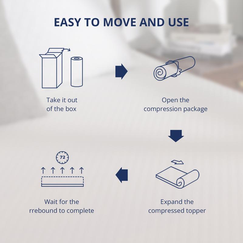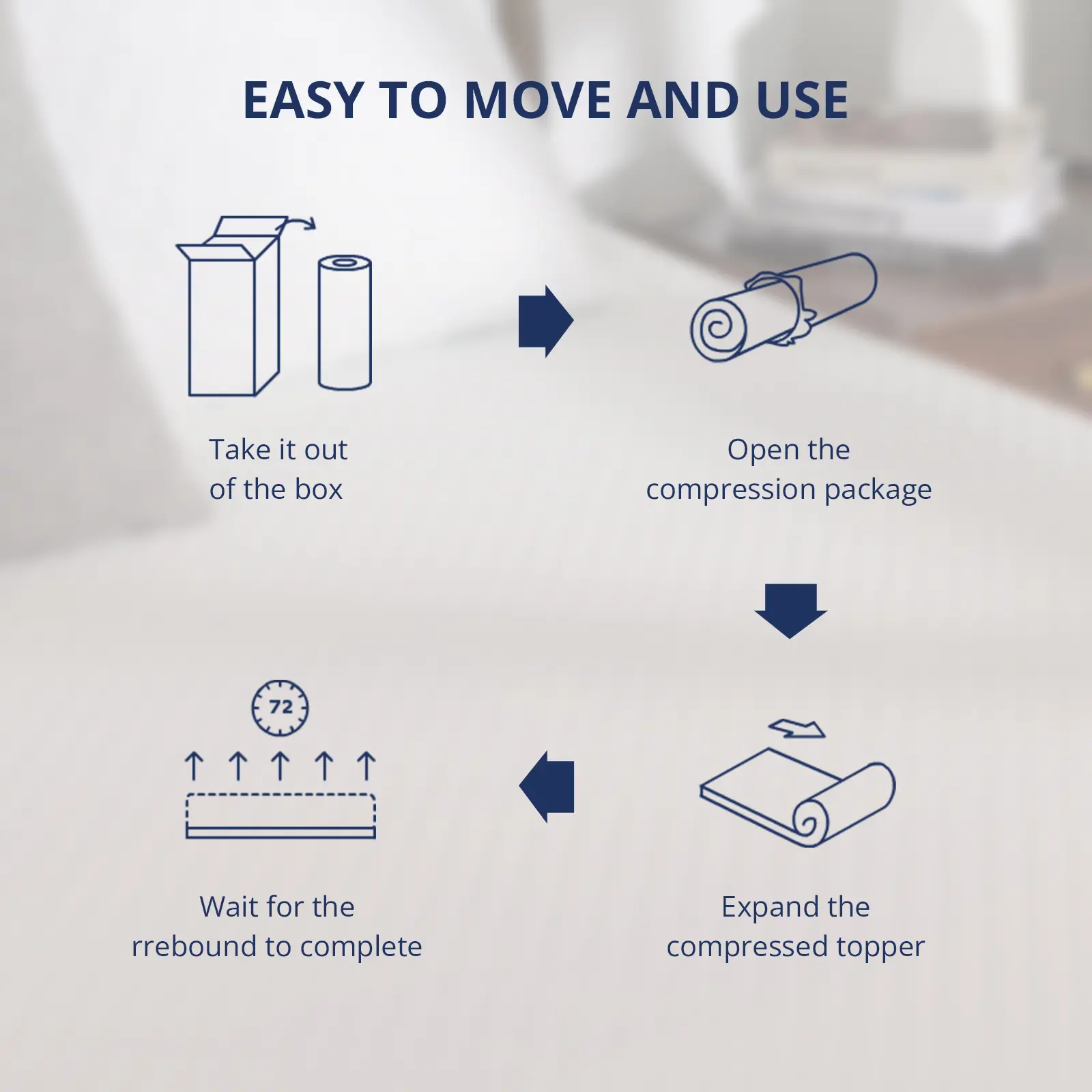 ·Machine Washable Cover: EGO original white topper is featured with a machine washable cover and zipper, which means you can keep it clean and the topper will last longer to some extent. By the way, please allow 24-72 hours for your mattress topper to fully expand.