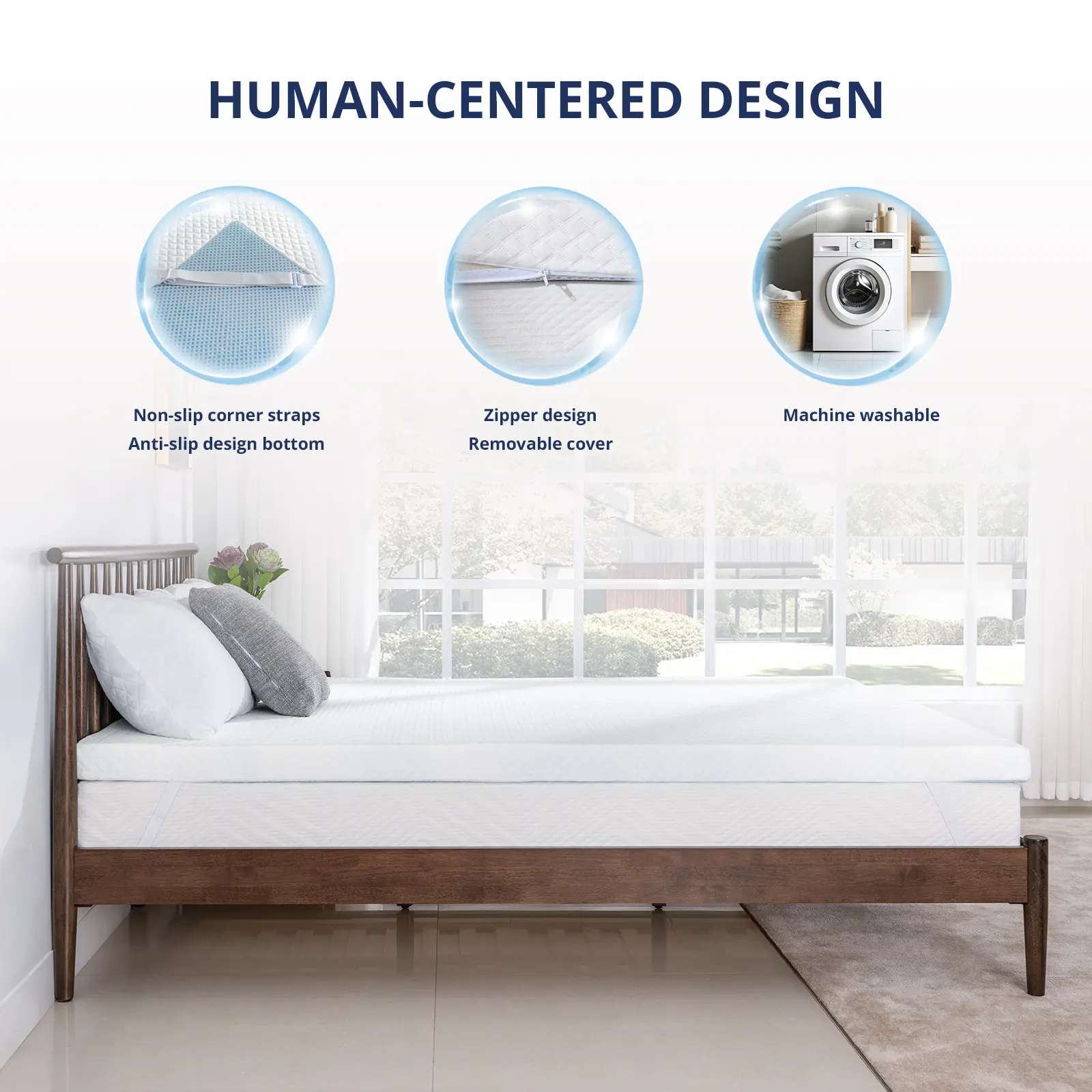 ·Stay Cool All Night: Our cooling mattress topper is designed with cooling gel infused and ventilation holes, the removable and washable fiber cover is cool to touch, and has a breathable mesh bottom, which keep you cool and comfortable all night long.