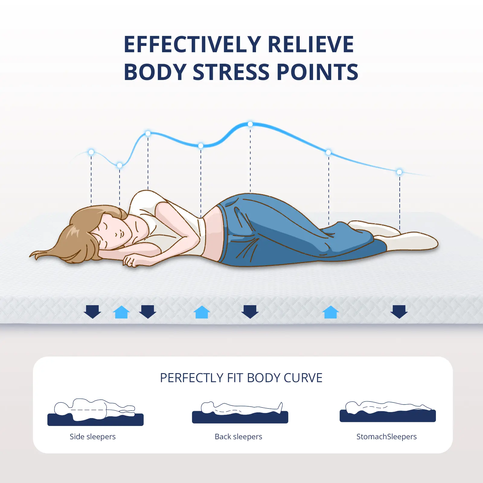 ·Superior Pressure Relief: The EGO original white topper offers medium soft to evenly support your whole body, reducing pressure points and alleviating hip, back, and leg fatigue. This moderate support makes our mattress topper a great investment for better sleep and well-being.