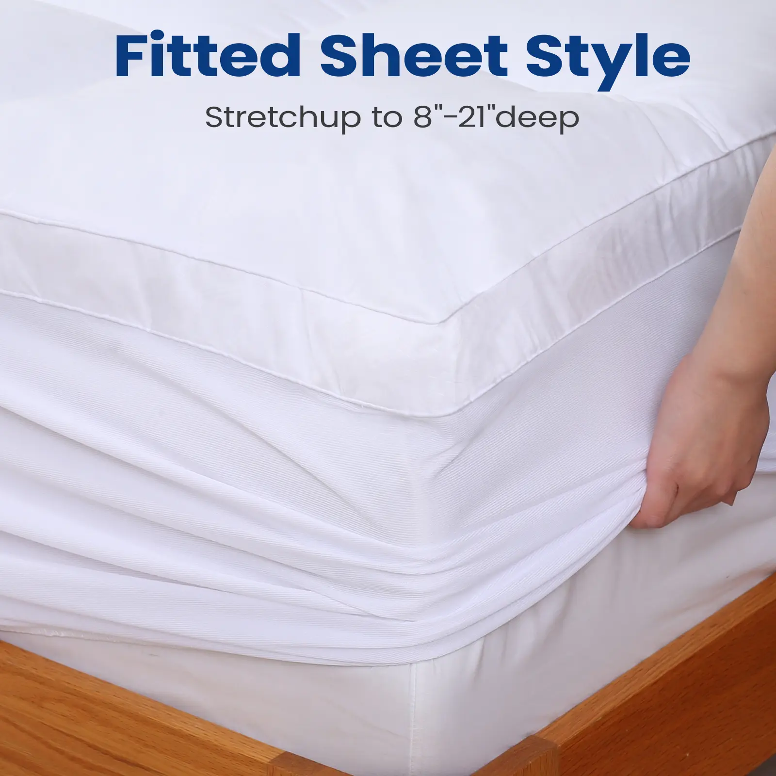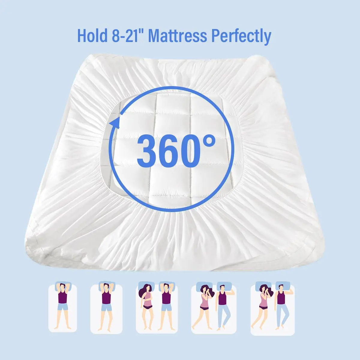 ·【No-Slip & Deep Pocket】 Elastic deep pocket will wrap mattress(8-21”) tightly. It works like a fitted sheet so the mattress topper will keep in place no matter how you toss and turn on your bed.