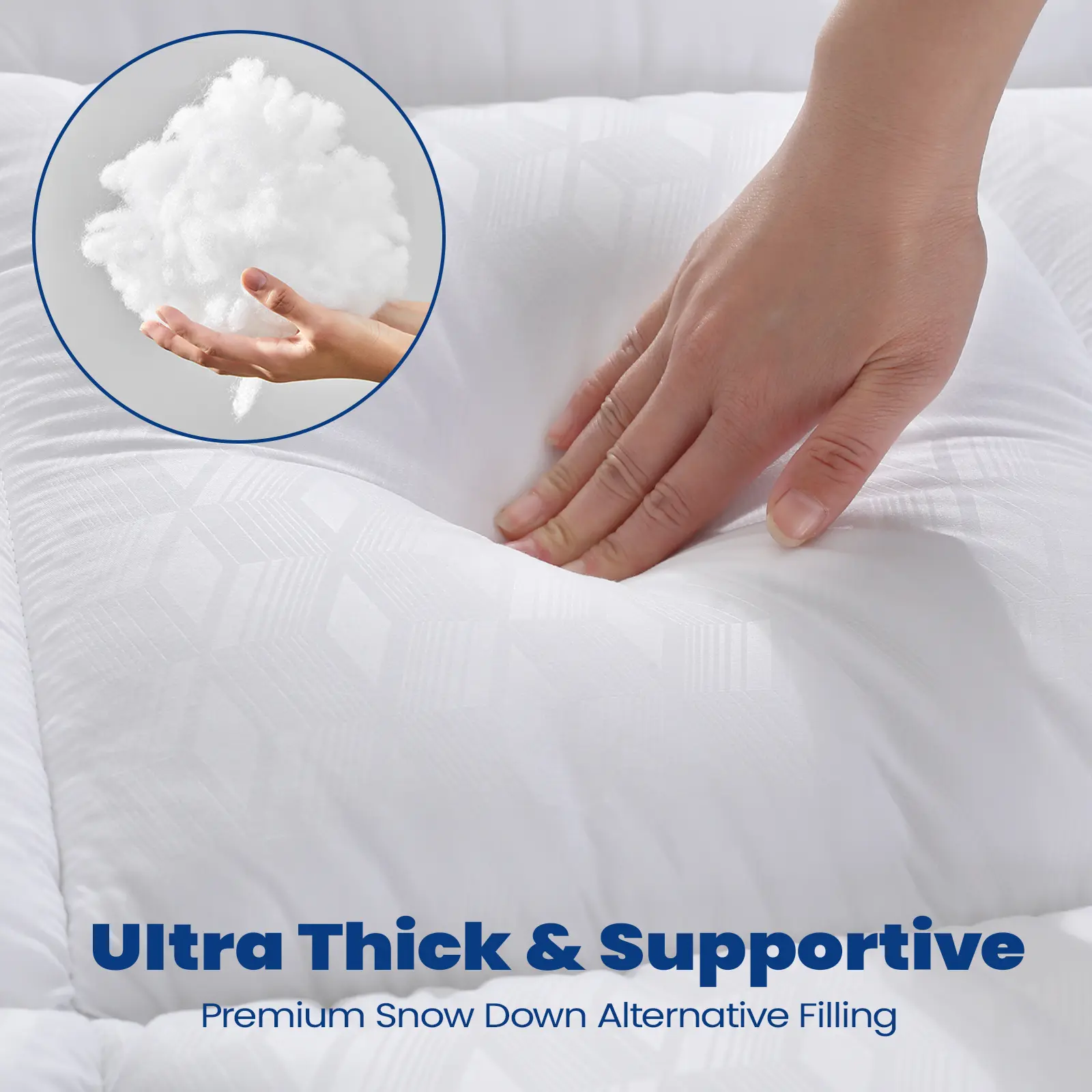 ·【Box Quilted & Filling】Our mattress topper is filled with 3Dsnow down alternative filling, extreme soft, fluffy and warm. Unique box-quilted design, which allows the padding to be fixed in each box, does not shift easily
