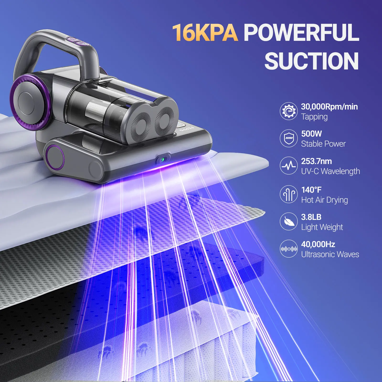 This FEPPO mattress vacuum is amazing! The strong suction removes dust mites and allergens effortlessly. It’s lightweight, easy to use, and perfect for deep cleaning beds, sofas, and upholstery. My allergies have improved noticeably. Highly recommend for a healthier home!
