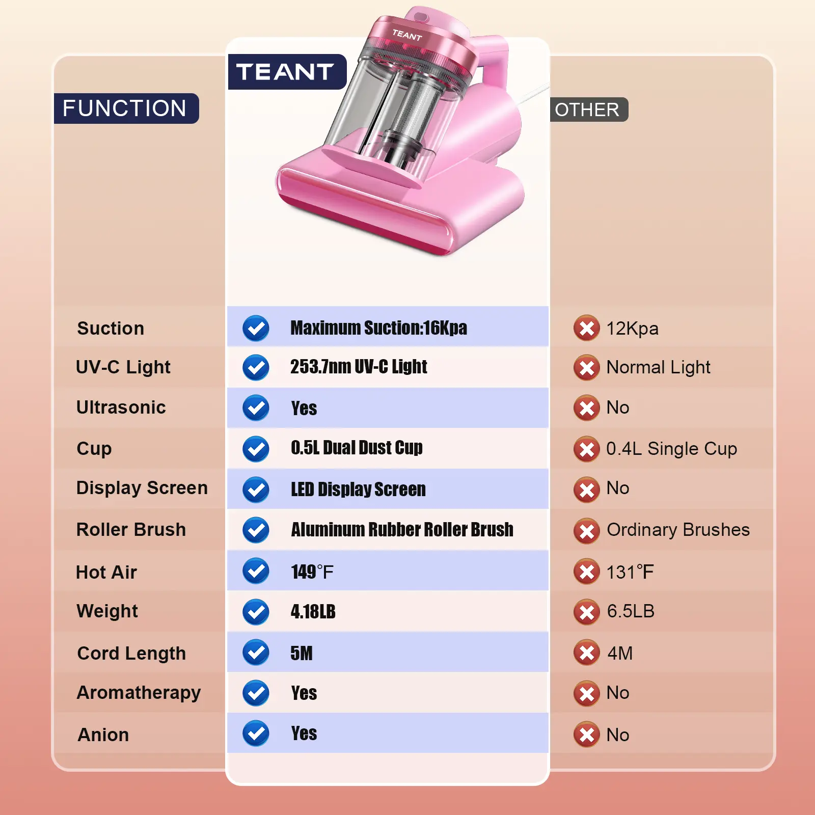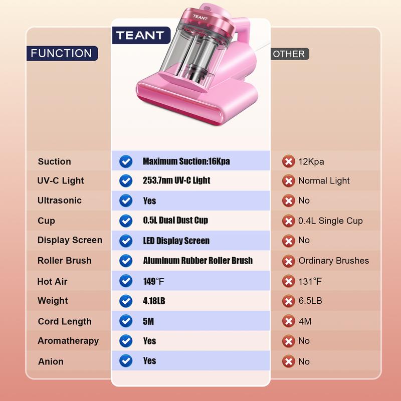 Aromatherapy Tablet: the bed vacuum equipped with aromatherapy tablet provides you with a fresh and pleasant sensory experience.