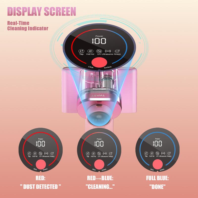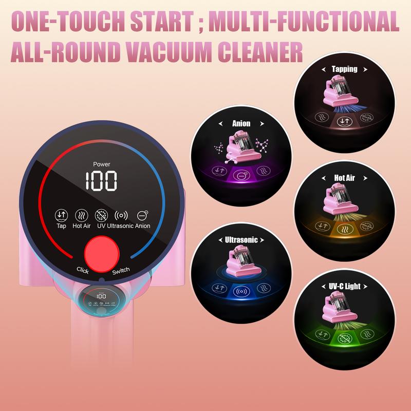 149℉ High-temperature Hot Air: The bed vacuum cleaner mattress vacuum has 149℉ hot air. The high-temperature air loosens dust, and the combination of the hot air with tapping and suction functions can more effectively remove dust and other allergens deep in the mattress while keeping the fabric dry.