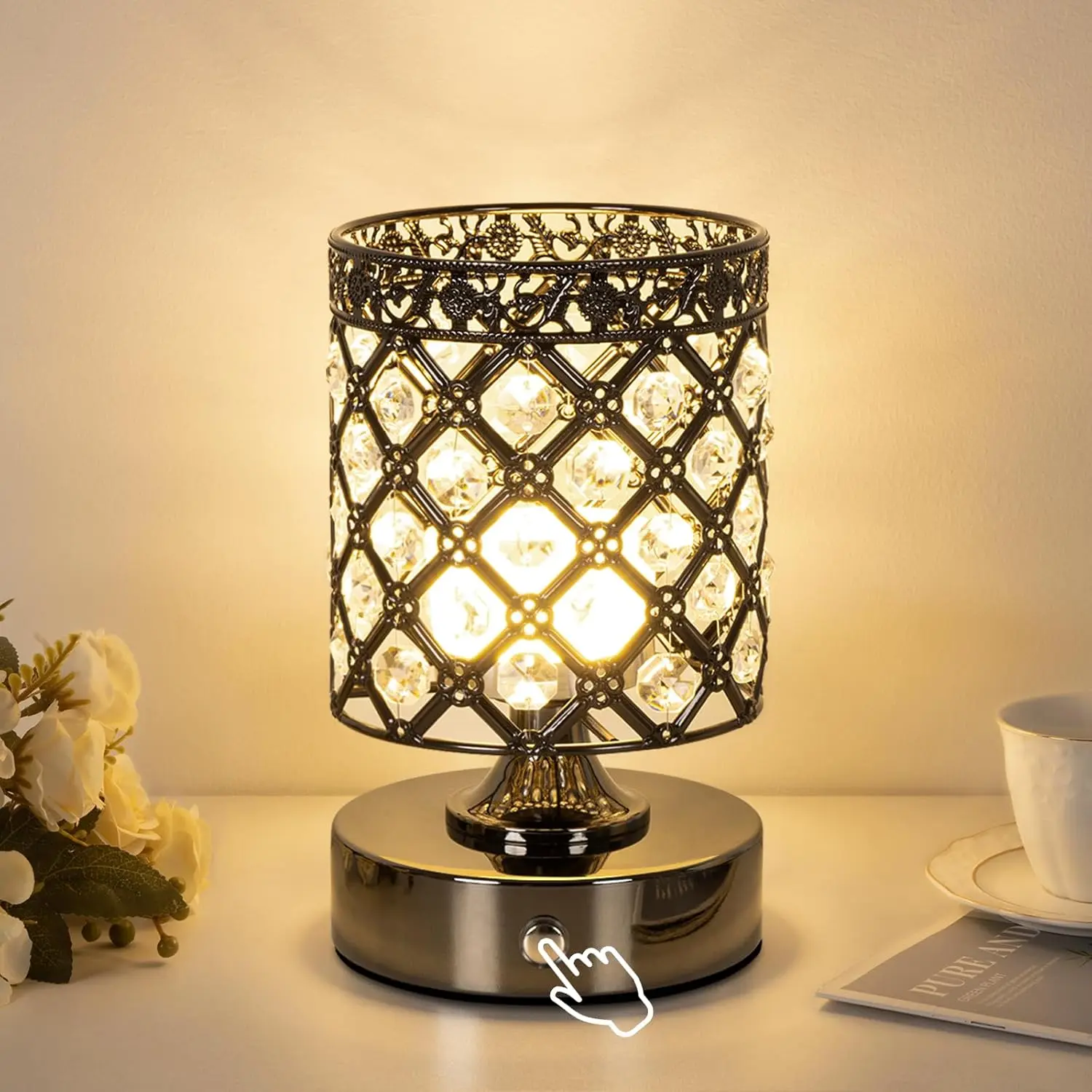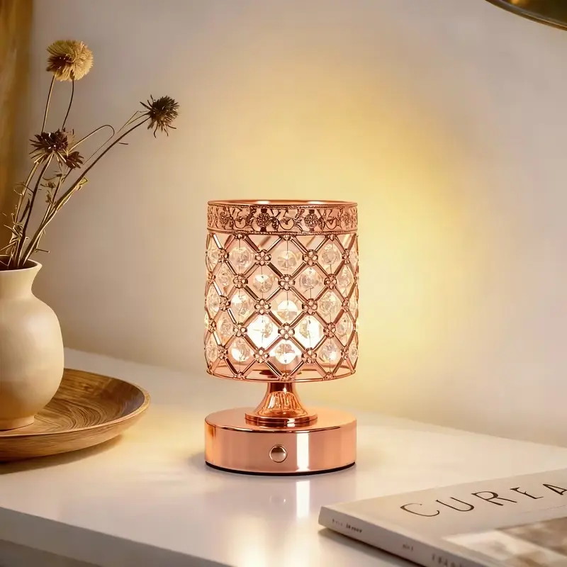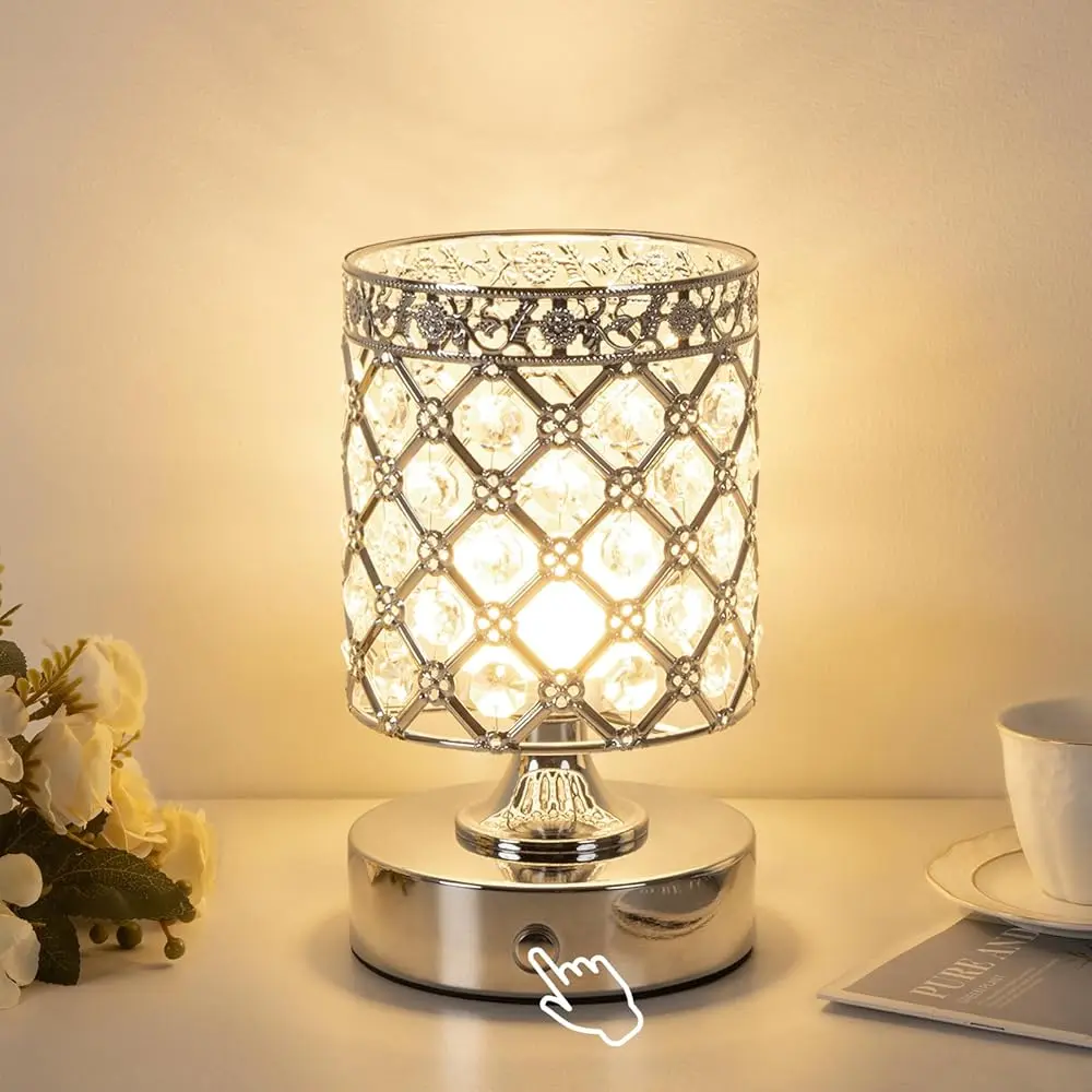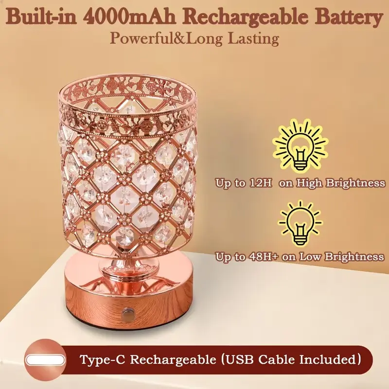 Rechargeable crystal table lamp ✨ Touch control wireless bedside light for bedroom, nightstand, dining table or cozy home decor.
