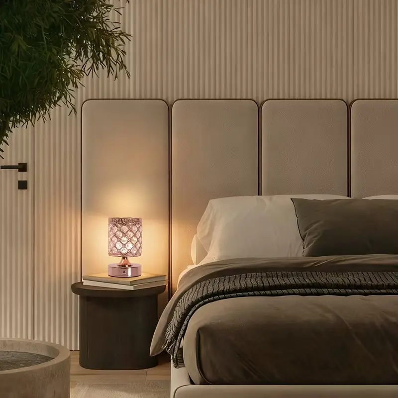 Why does this look like something from a boutique hotel? Rechargeable, touch control, and the prettiest soft light. My space feels instantly more luxe. #CrystalLamp #RechargeableLamp #BedroomLighting #HomeDecorTok #CozyHome