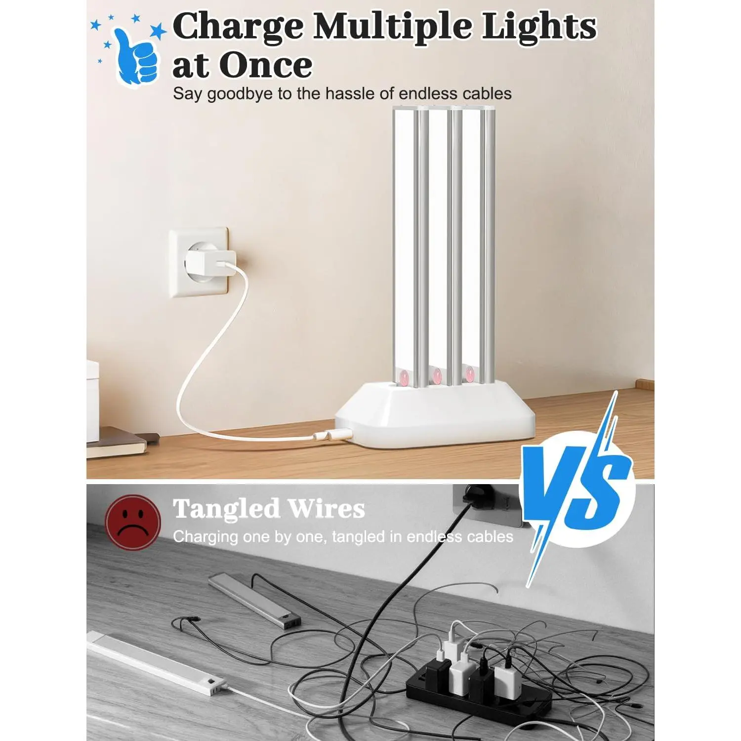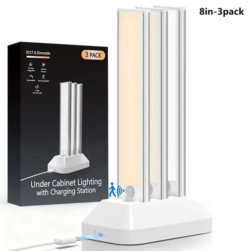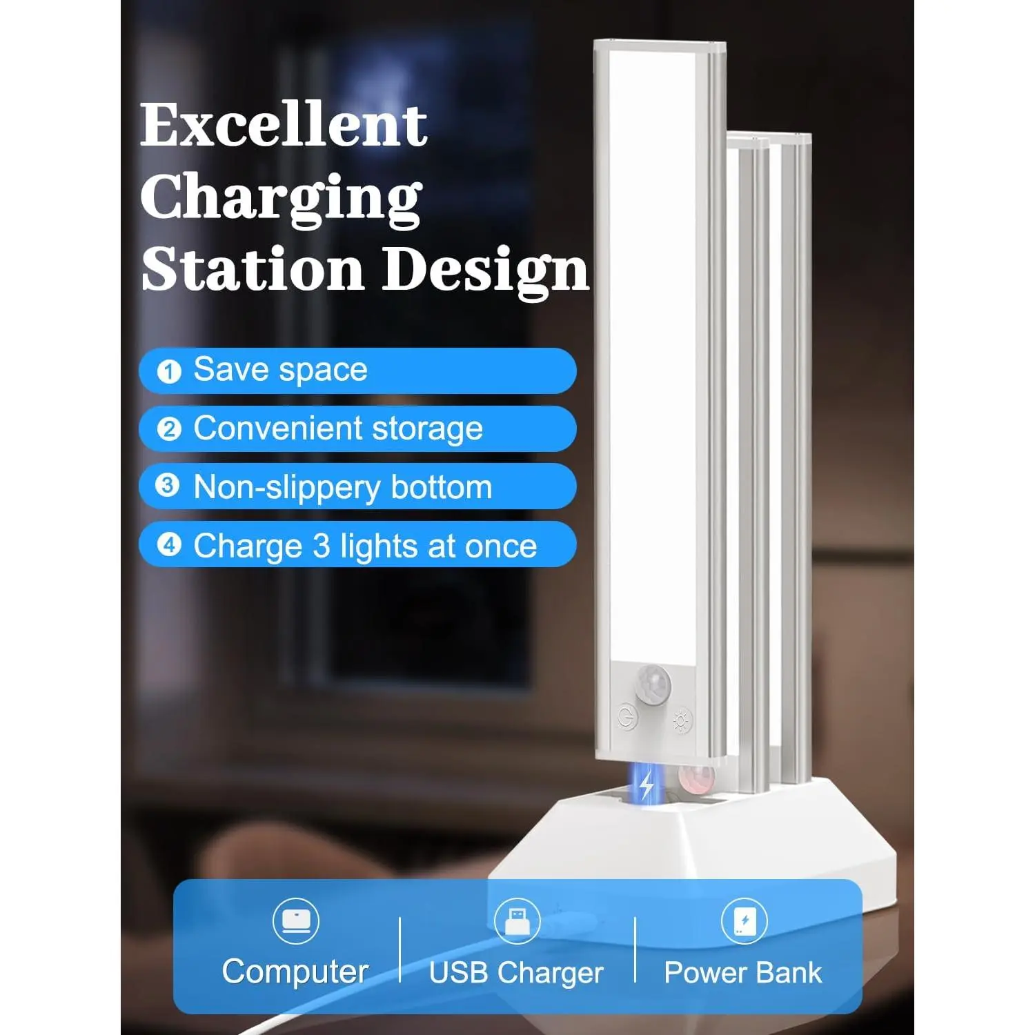 3/6Pcs Under Cabinet Lighting with Charging Station, Rechargeable Motion Sensor Light Indoor, Dimmable Closet Lights with 3 Color Tempers, Magnetic Under Cabinet Lights for Kitchen Wireless