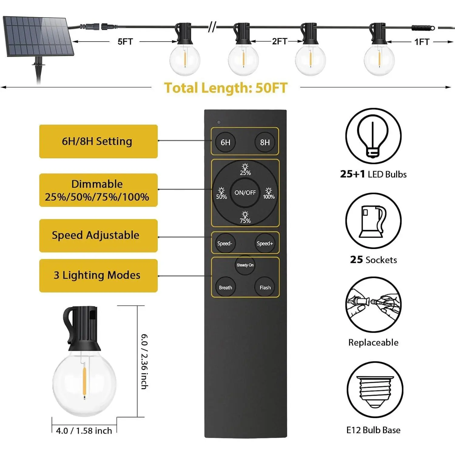 With extra-large solar panels boasting a20%+ conversion rate and upgraded output of 3W, our outdoor string lights provide stable and consistent lighting.