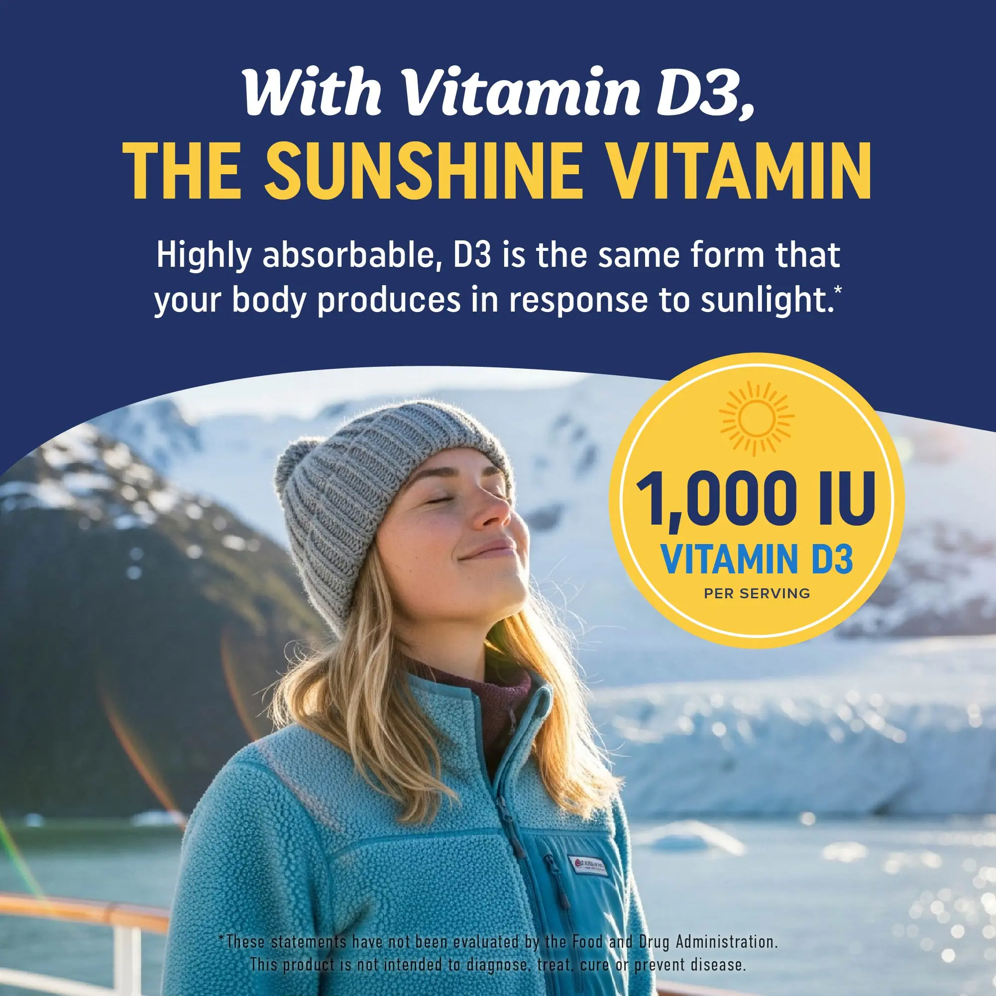 ·Vitamin D3 promotes calcium absorption for strong bones and teeth.