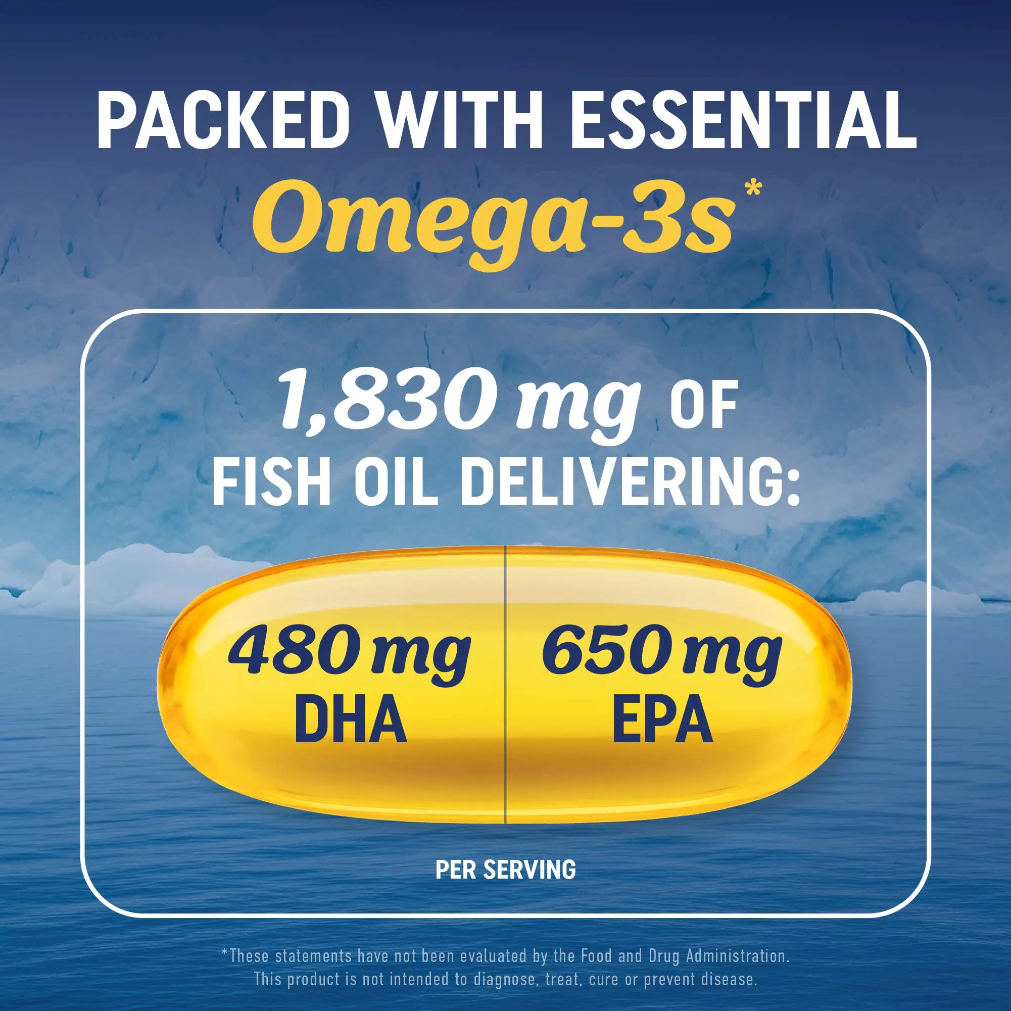 This supplement includes 1,830MG of fish oil, delivering 1,280MG of total Omega 3 EPA DHA per serving. Each serving contains 650mg EPA and 480mg DHA.