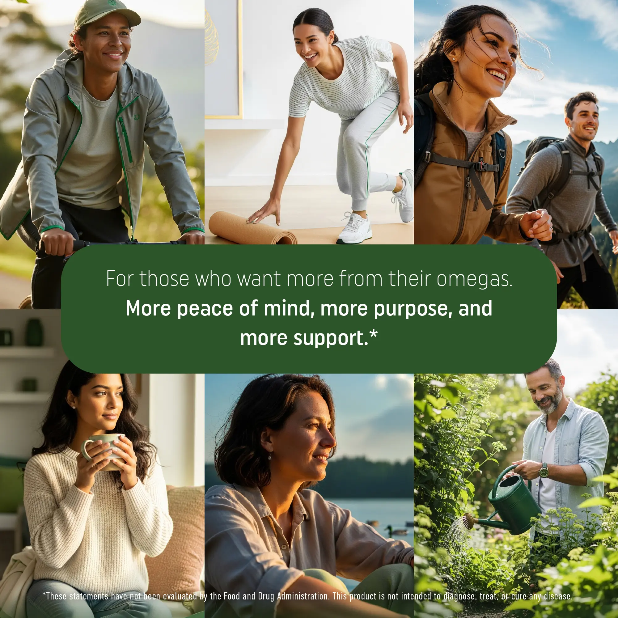 Made without any fish, this vegan fish oil alternative reduces overfishing and doesn’t cause fishy burps. Sustainable and responsibly-sourced Vegan Omega 3 6 9 support is as easy as 2 softgels per day.