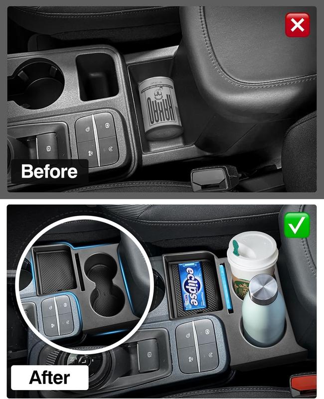 【Keep Your Car Organized】Canvcle cup holder insert center console organizer for Ford Maverick is a handy and perfect addition to keep your car tidy and clean. Smart design allows for convenient storage of various items while keeping your cans and water bottles stable.