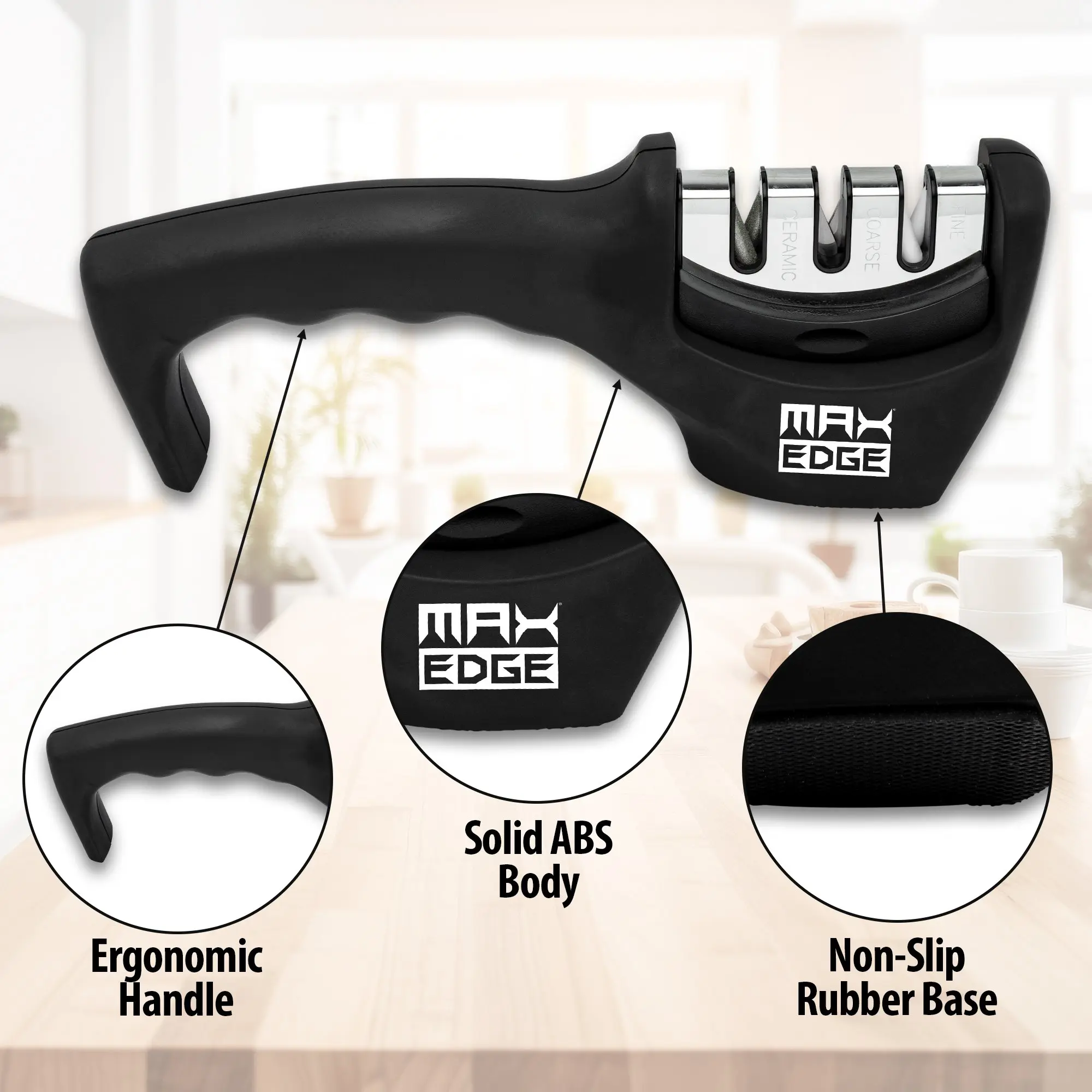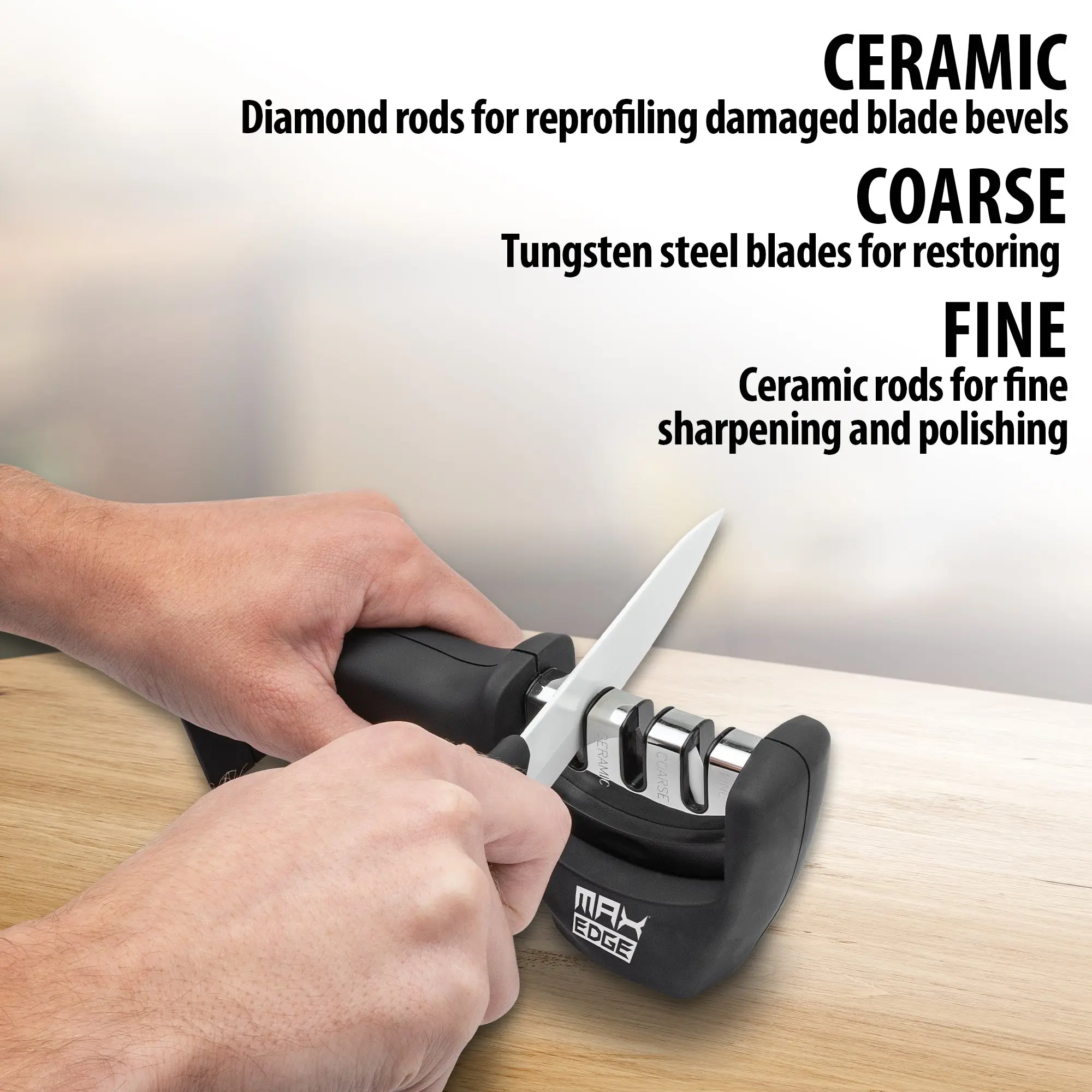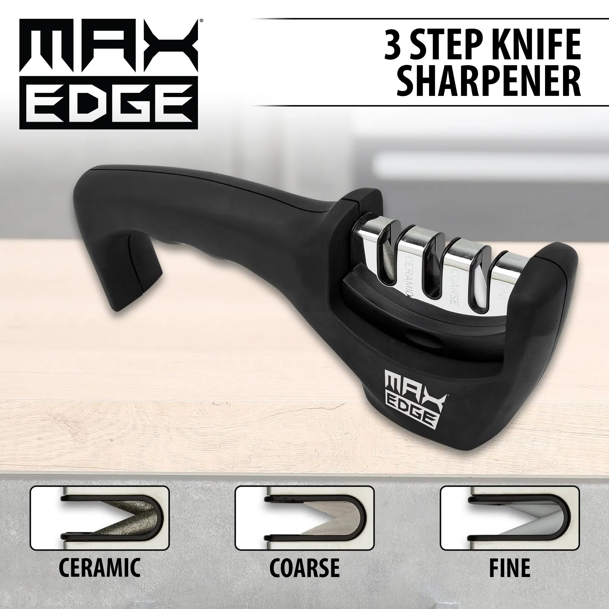 Max Edge 3 Step Knife Sharpener - Sharpen, Repair, Polish