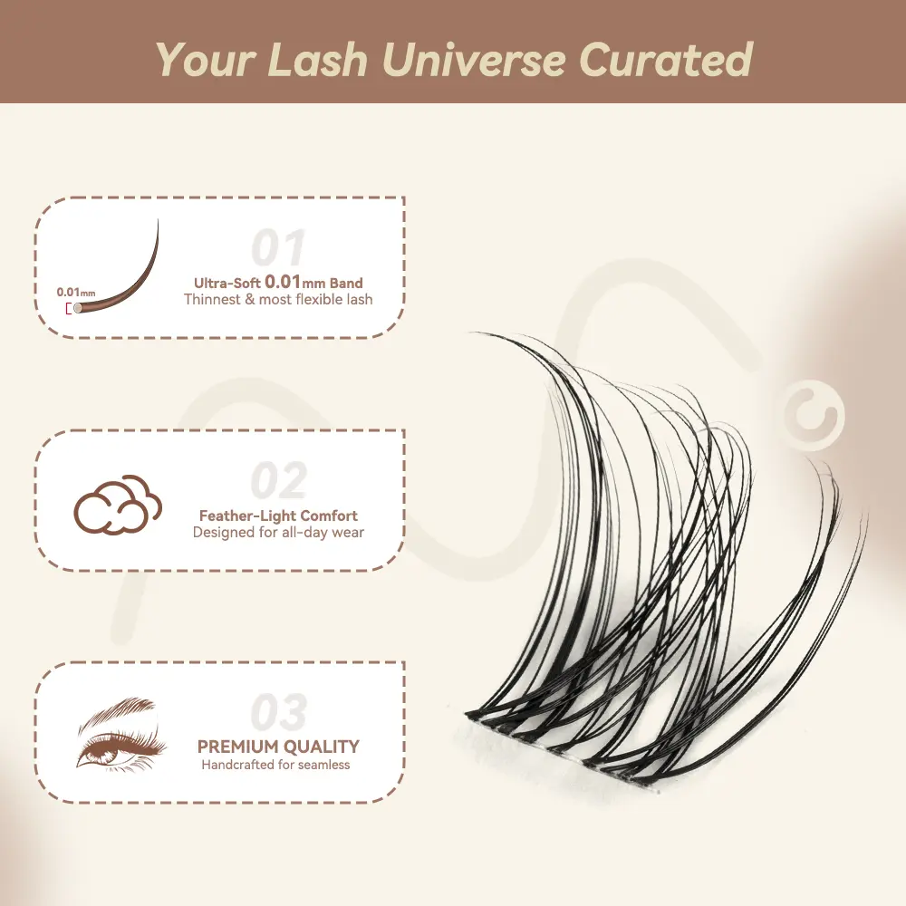 These lashes are designed for all-day wear, ensuring they stay put and look flawless. Perfect for those seeking long-lasting, waterproof lashes that maintain their appearance throughout the day. The thin band provides a comfortable fit, making these lashes ideal for daily use. They are super soft, ensuring a gentle feel against your eyelids, enhancing your comfort.