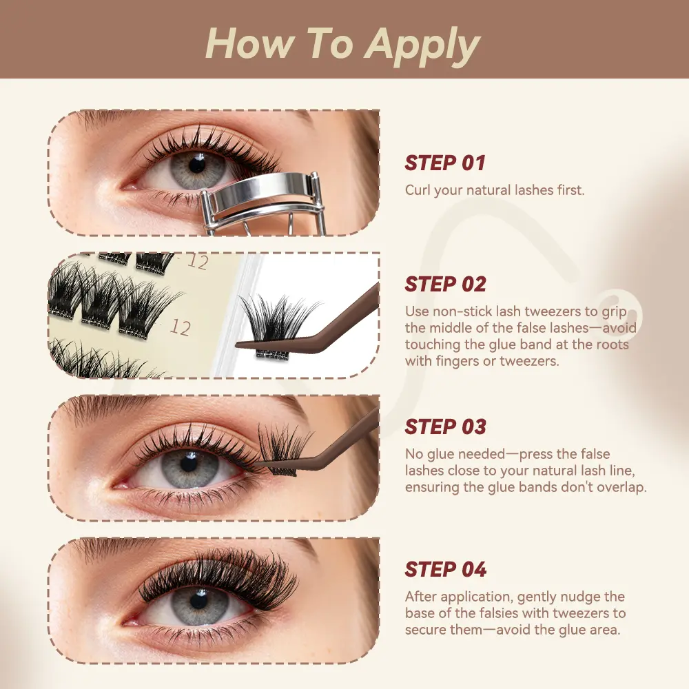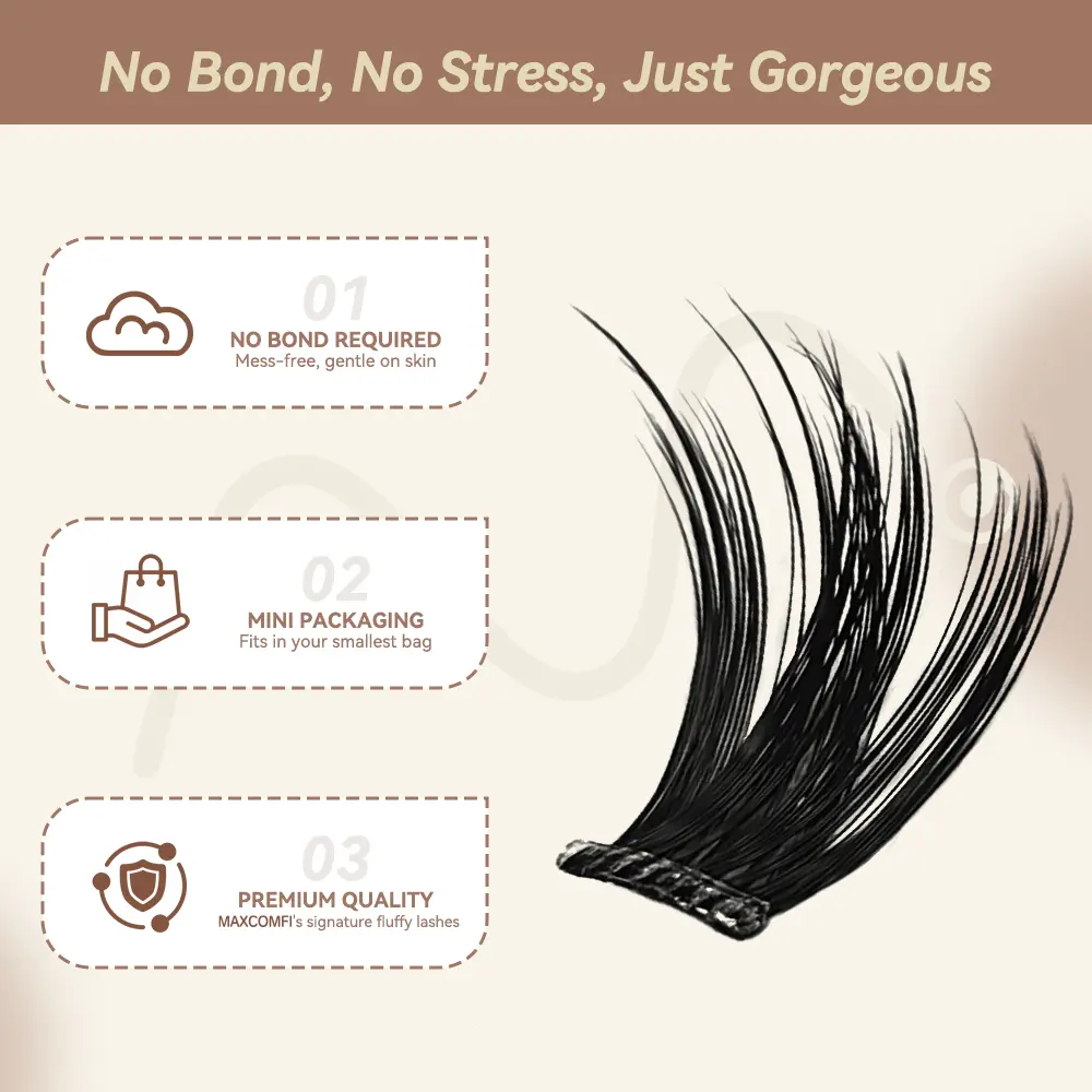 By far the easiest lashes I’ve ever used. I didn’t mess up on any lash&applied in 5mins. I’ve tried many pre-glued lashes before&so many rip apart when trying to take the clusters out of the pan. These are easy to take off the pan, making it super easy to apply. They’re also SO comfy, no poking.