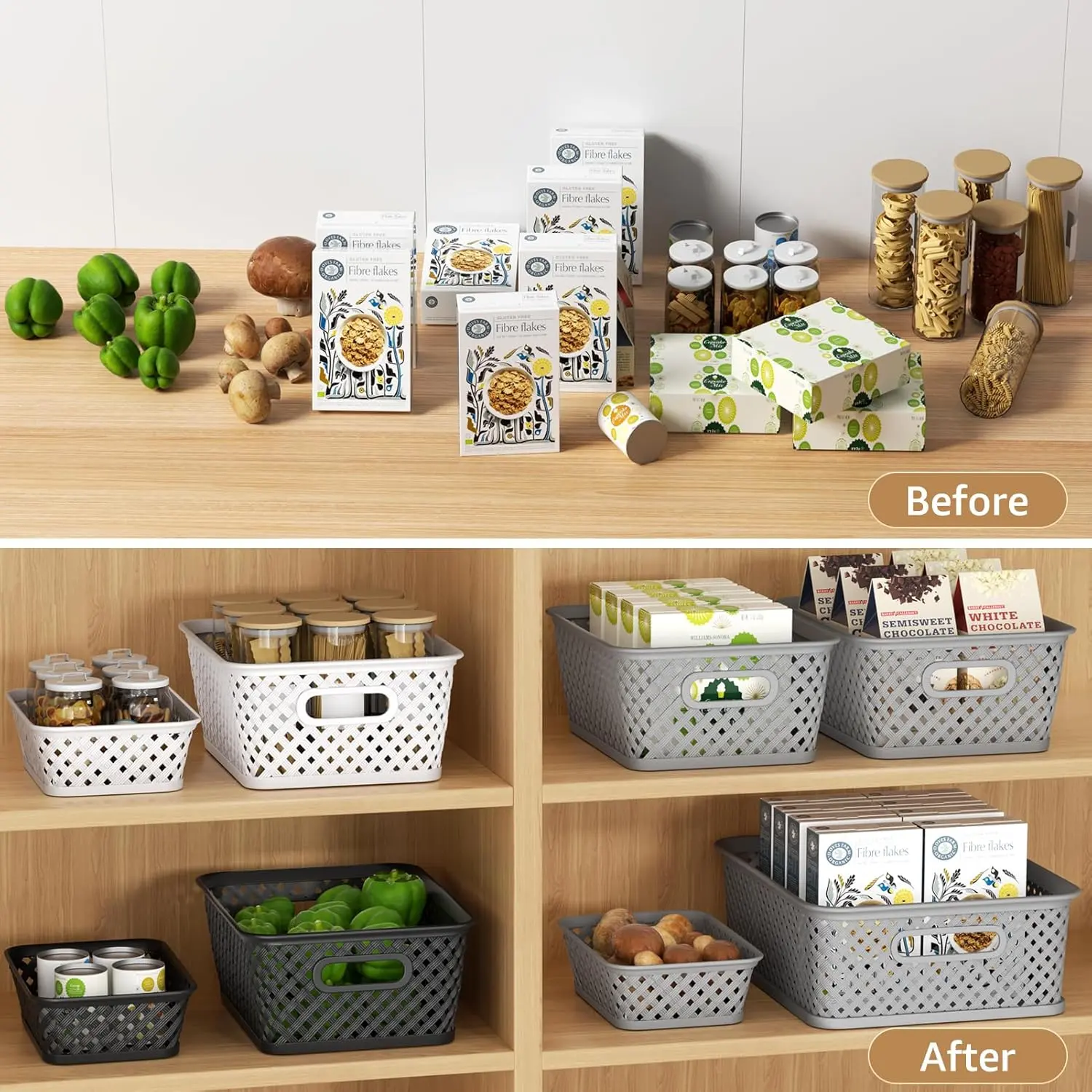 ·Multi-Purpose Use: Function as drawers when used with a organization bins. Plastic baskets set provides perfect, lightweight way to accessorize, organize, and store while keeping items tidy and organized at home, office, loft or other dwellings. It is a great way to store snacks, books, toiletries, stationery, clothing and other items. This will save you time looking for things when you take them.