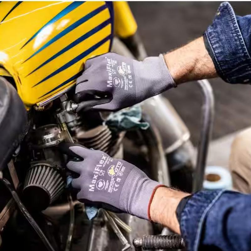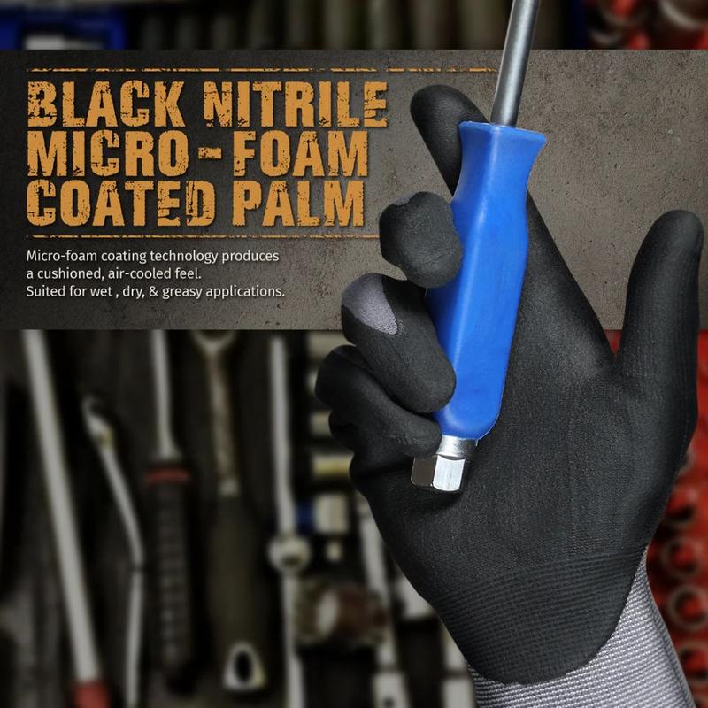 ·DURABILITY and EXCELLENT DEXTERITY - These coated on palm and fingertips provide a secure grip in dry and slightly wet/oily conditions. Machine washable.