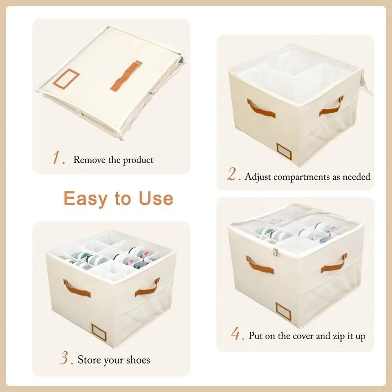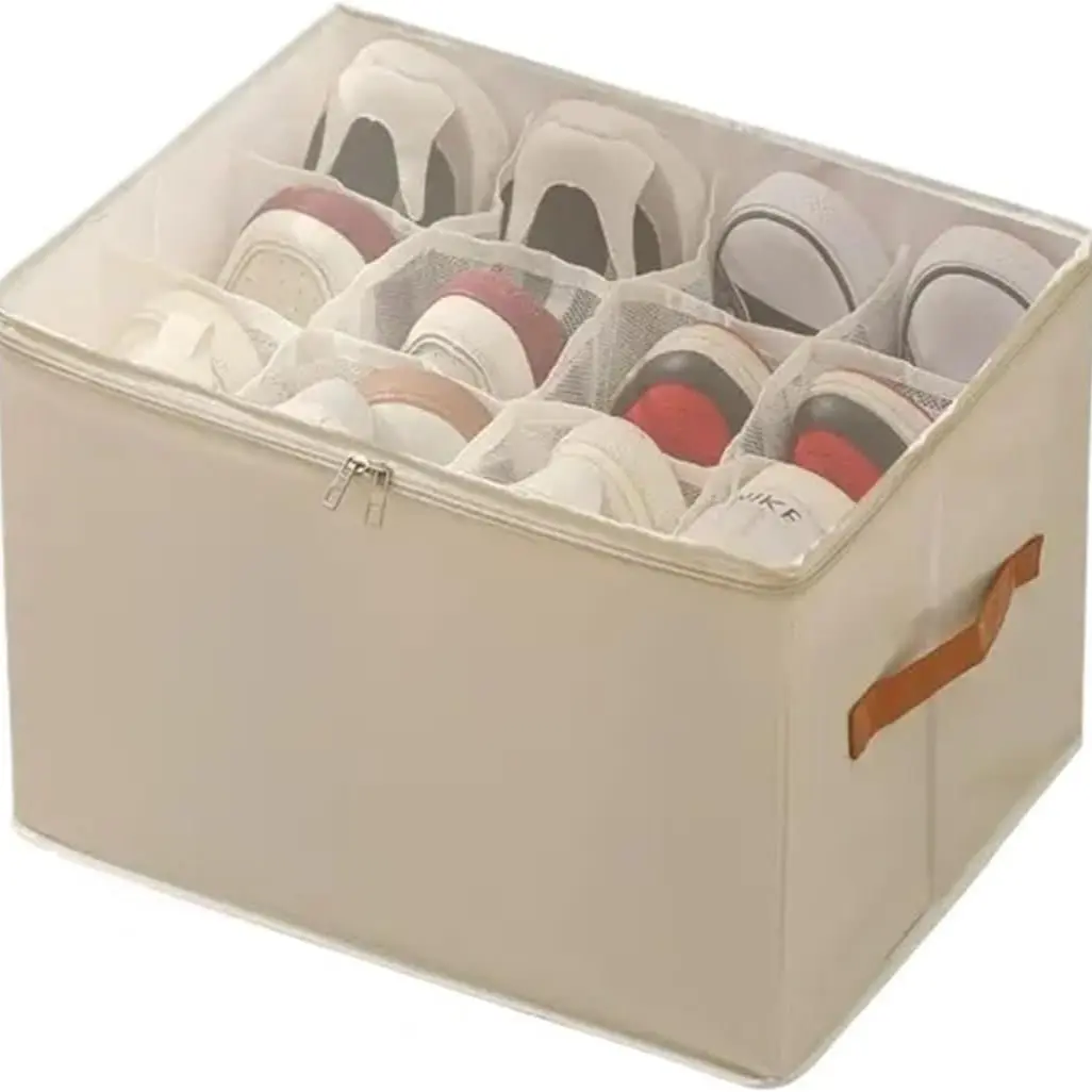 Designed with internal polypropylene dividers securely attached to reinforced side panels, this shoe storage organizer lets you fully customize compartment sizes. Shoes stay upright and separated, preventing shifting or collapsing during storage.
