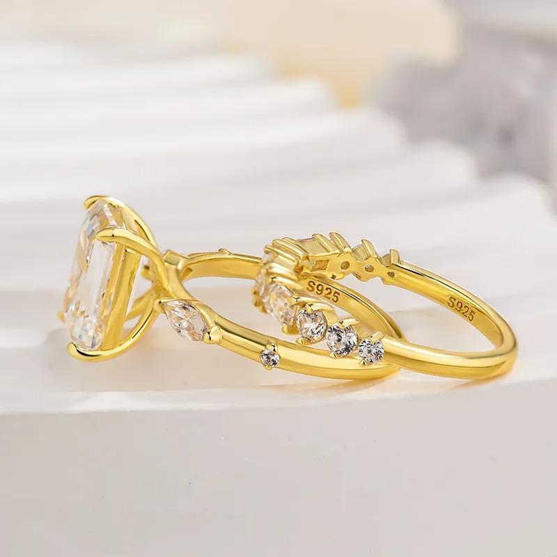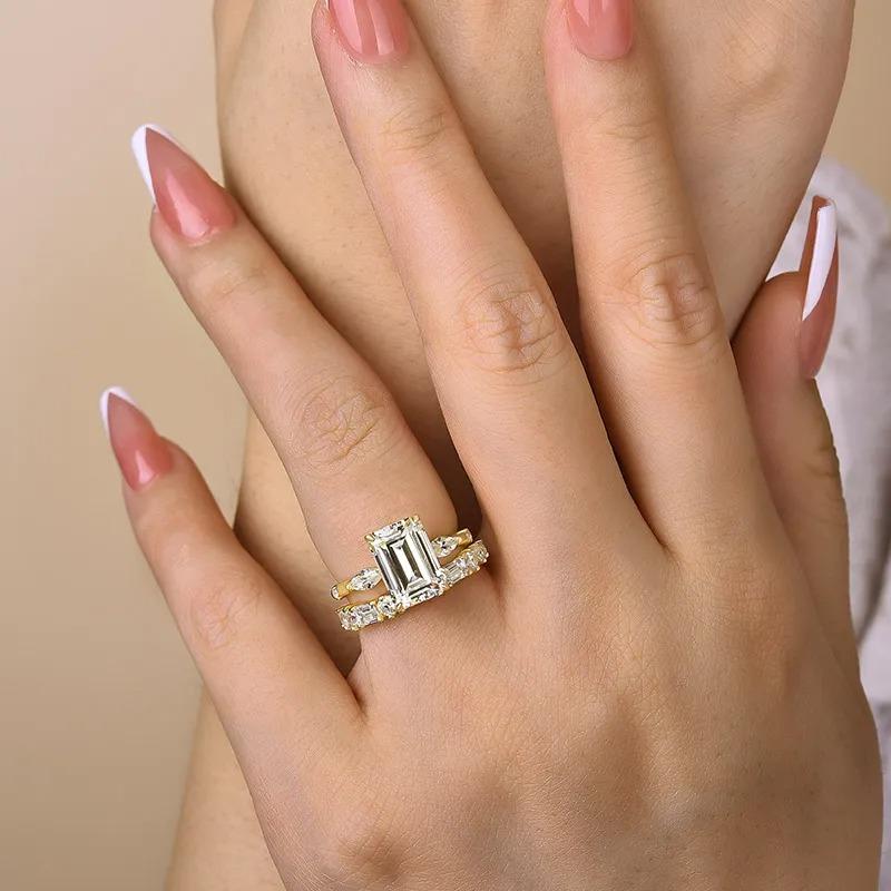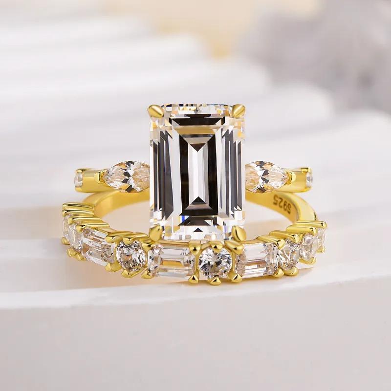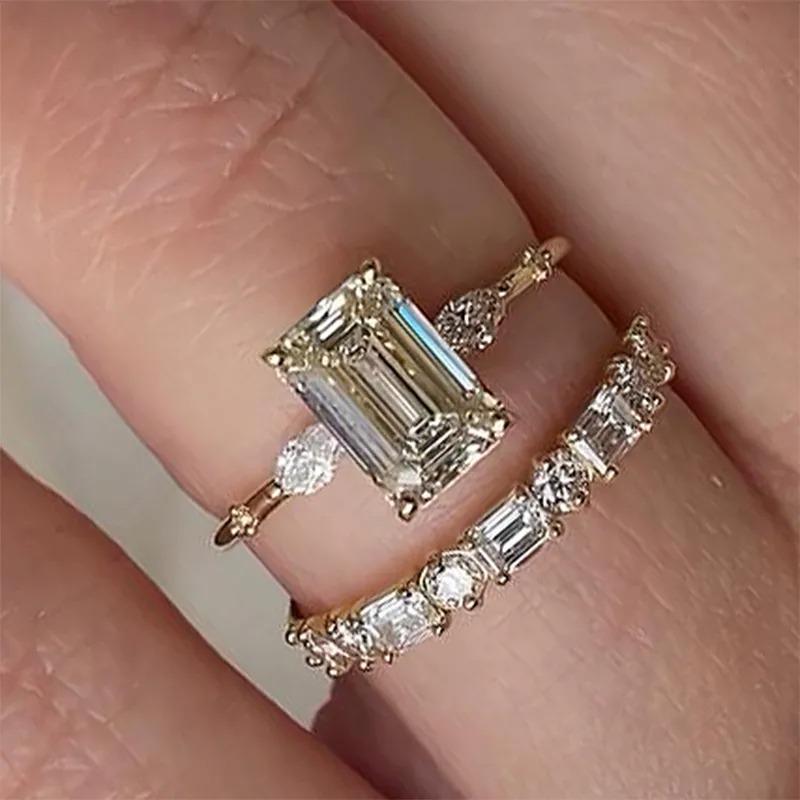 Maxine CZ 3.5ct Rectangle Cut Engagement Ring Set,5A Cubic Zirconia Women's Ring Jewelry,Travel Ring Set, Wedding Ring Set for Daily,Proposal,Birthday,Anniversary