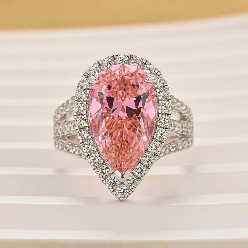 Maxine CZ 4.5ct Pink Stone Pear Cut Engagement Ring,5A Cubic Zirconia Women's Ring Jewelry,Promise Ring for Daily,Travel,Proposal,Wedding,Birthday,Anniversary